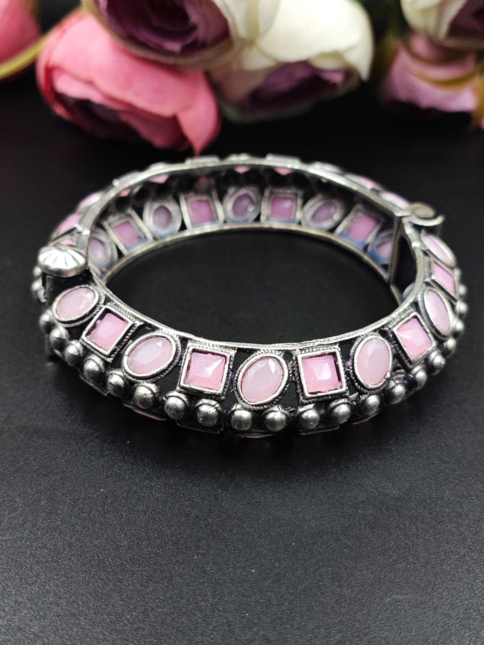 Babypink Indian Traditional Designer Stonework Silver Oxidised Bracelet Kada Openable Free Size Kangan Bangle