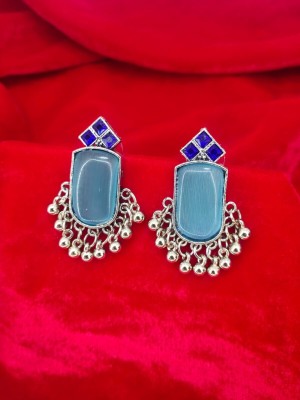 Blue Round Stud Oxidized Earring Blue Stone New Bollywood Studs Pushback Earrings