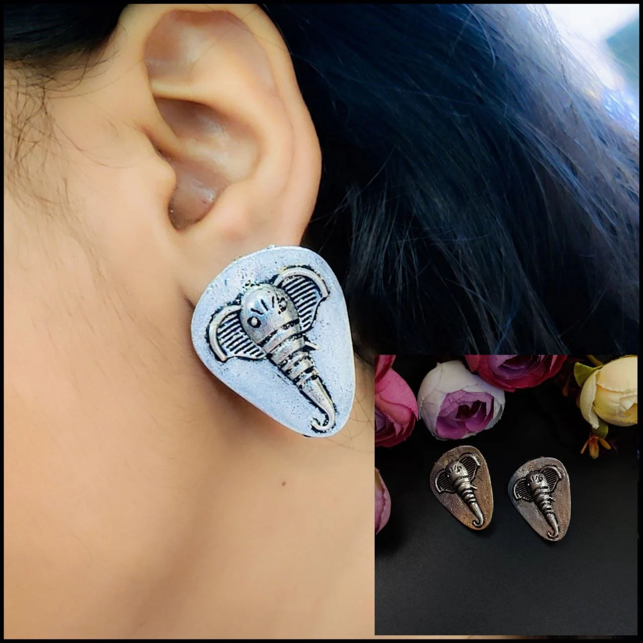 Oxidized Elephant Stud Earring New Bollywood Animal Studs Pushback Earrings