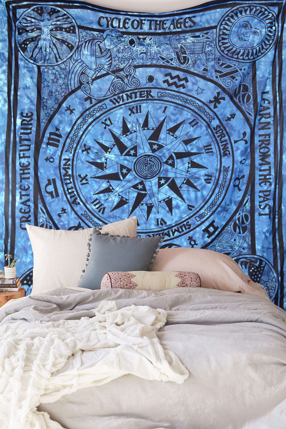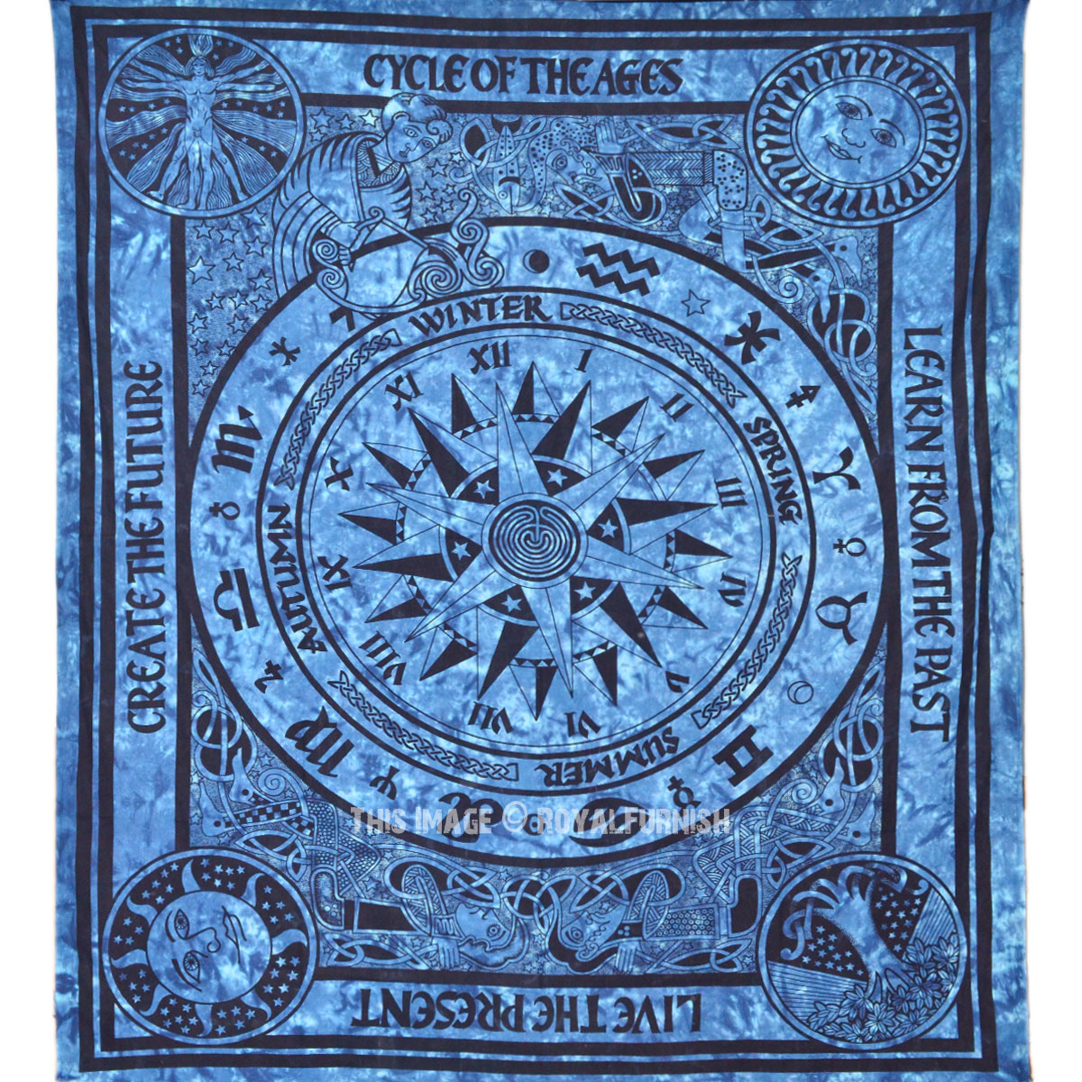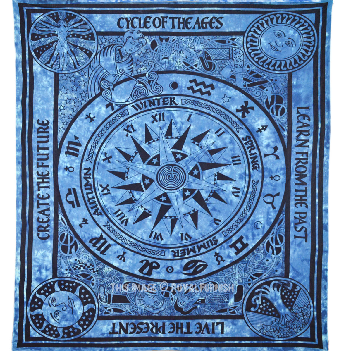 Blue Mystical Astrological Cycle of Ages Tapestry Horoscope Zodiac Sign Wall Hanging Mandala Wall Tapestry