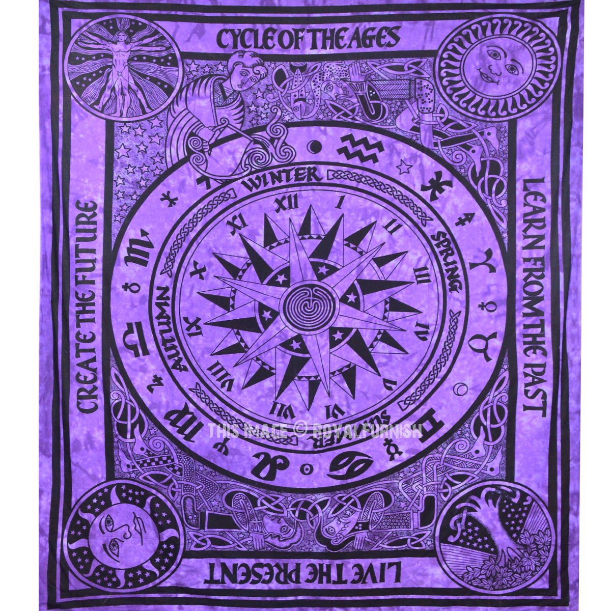 Purple Mystical Astrological Cycle of Ages Tapestry Horoscope Zodiac Sign Wall Hanging Mandala Wall Tapestry