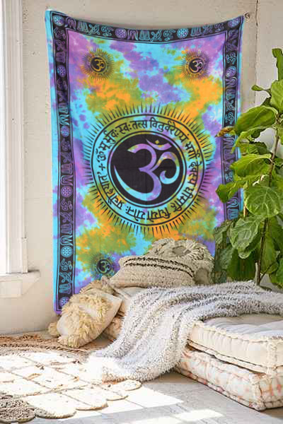 We've reached with distinctive, very reasonably priced assortment of attractive tie dye Hindu OM print light weighted thin cotton tapestry wall hanging which fits with any kind of budget, each beautifully constructed from 100% fine cotton in India. The tapestry is finished with bordered edges.