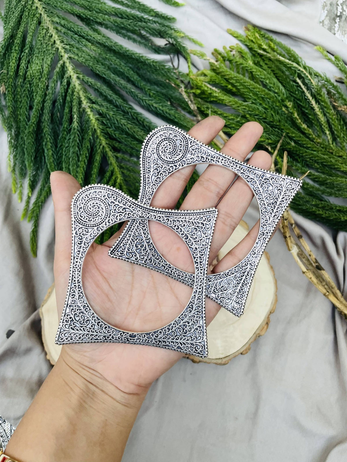 1 Pair Embossed Kada Kara Bracelet Bangle Oxidised Antique Gypsy Fashion Jewellery