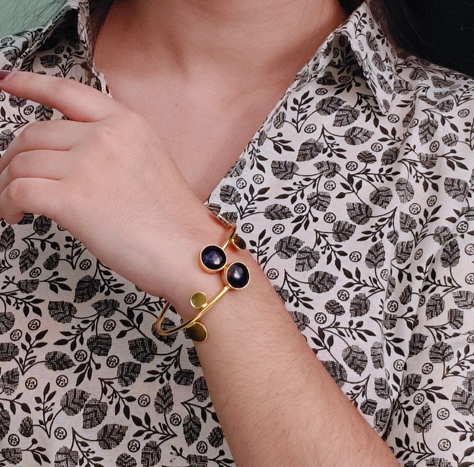 Blue Special Gold Plated Cuff Monalisa Stone Designer Bangle Anti Tarnish Affordable Fancy Bracelet for Girls