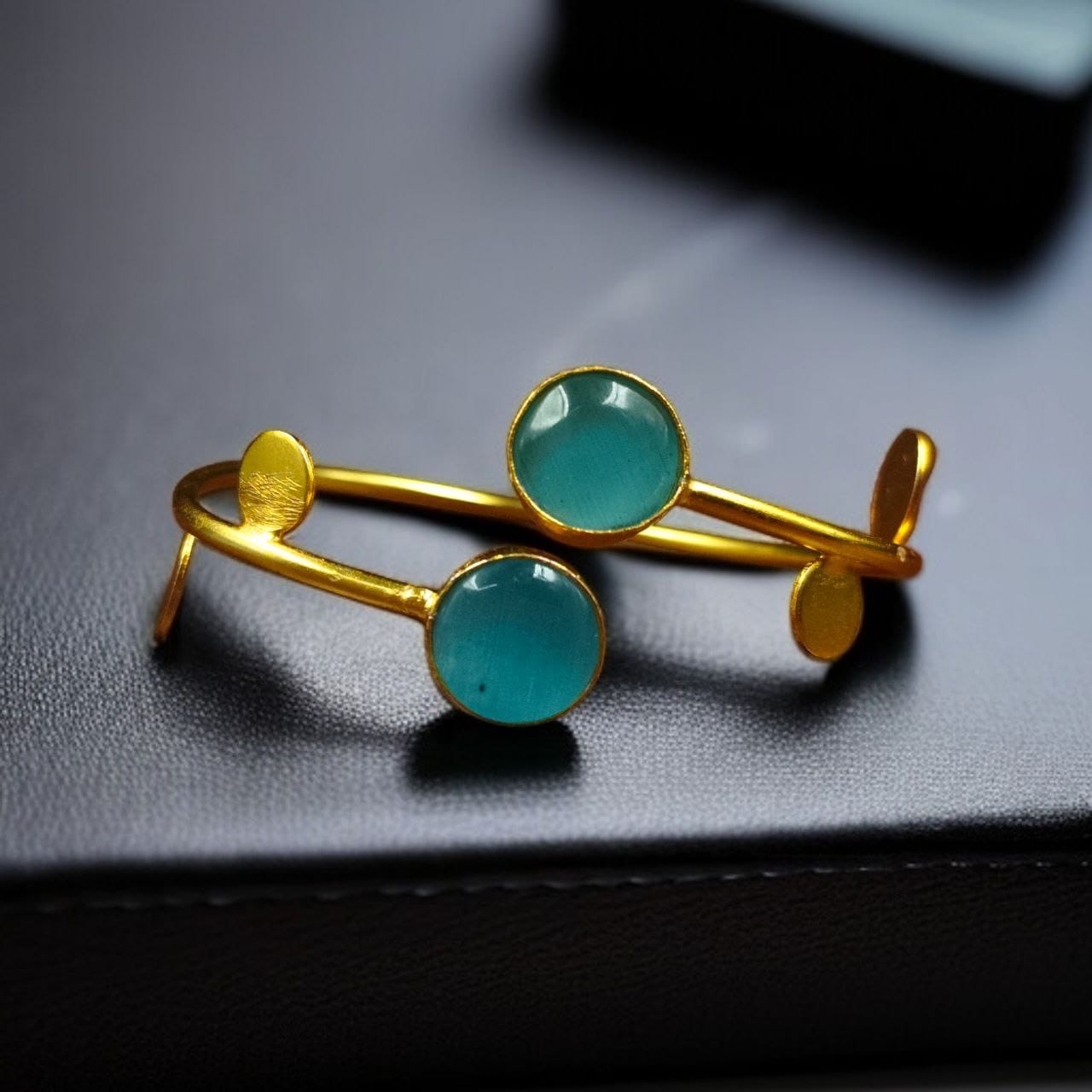 Aqua Special Gold Plated Cuff Monalisa Stone Designer Bangle Anti Tarnish Affordable Fancy Bracelet for Girls
