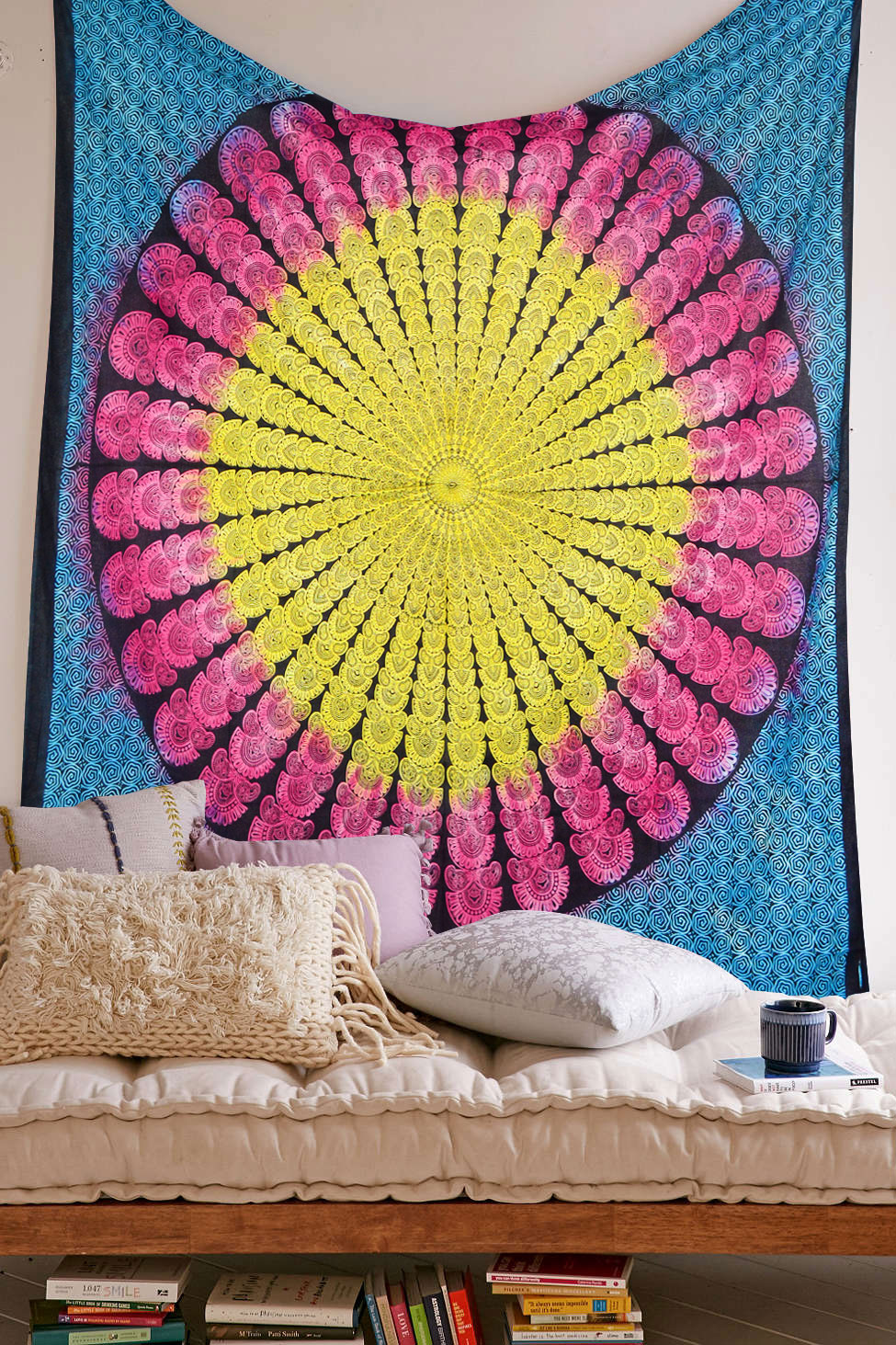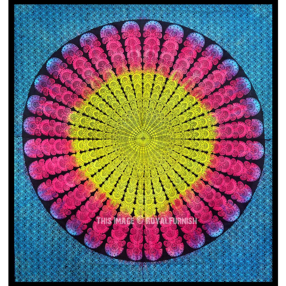 If you've been looking for something new to hang on your walls, or you just moved into a new place and are starting from scratch, wall tapestry is an easy way to add charm to your space. It is made from 100% cotton fabric. It is thin premium quality mandala round sheet featuring peacock wings design into tie dye pattern. Add it to your wall space to add freshness in your home decor.