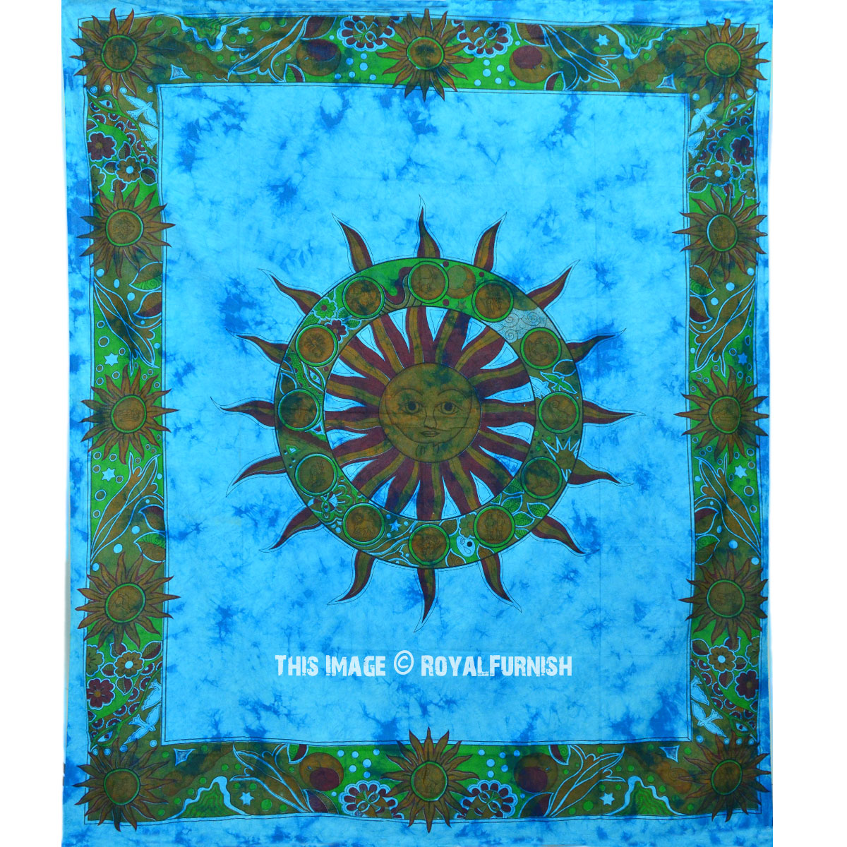 Design 1 Turquoise Blue Multi Psychedelic Sun & Moon Tapestry Celestial Energy Mystic Indian Wall Hanging