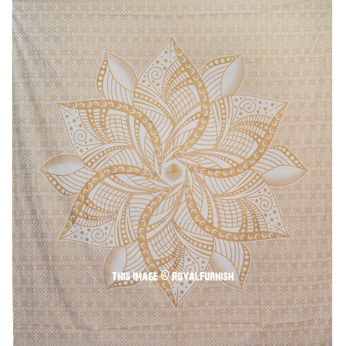 Gold White & Glittering Gold Bohemian Large Lotus Mandala Tapestry Wall Hanging Cotton Fabric Tapestry