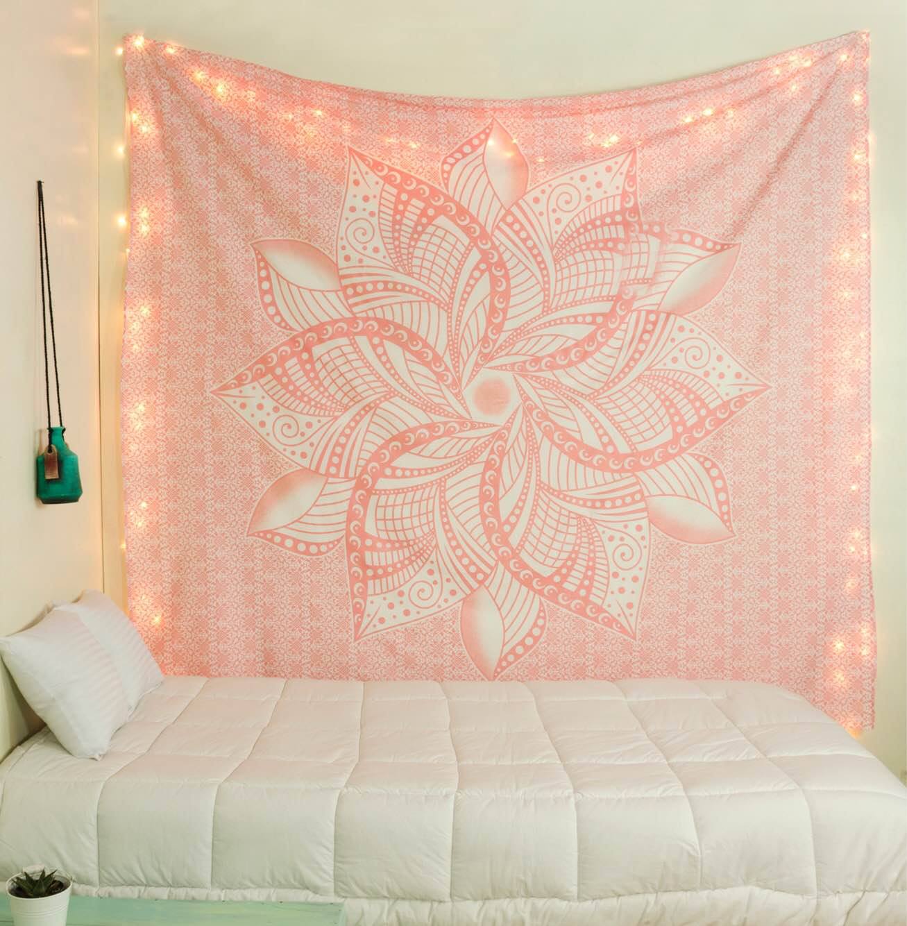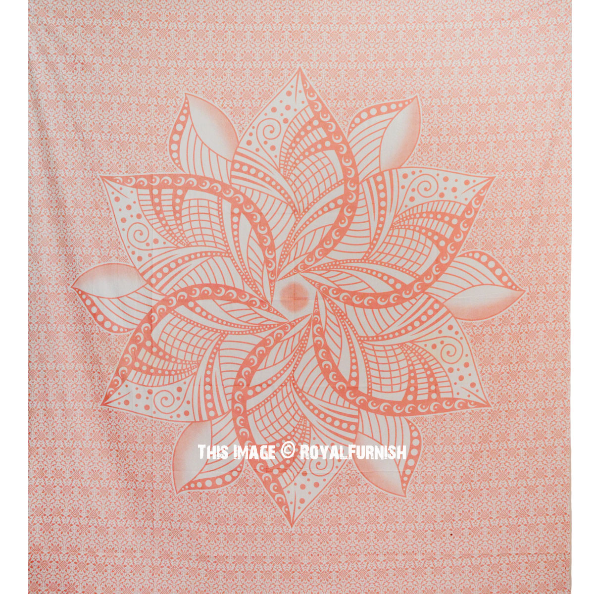 Rose Gold White & Glittering Gold Bohemian Large Lotus Mandala Tapestry Wall Hanging Cotton Fabric Tapestry