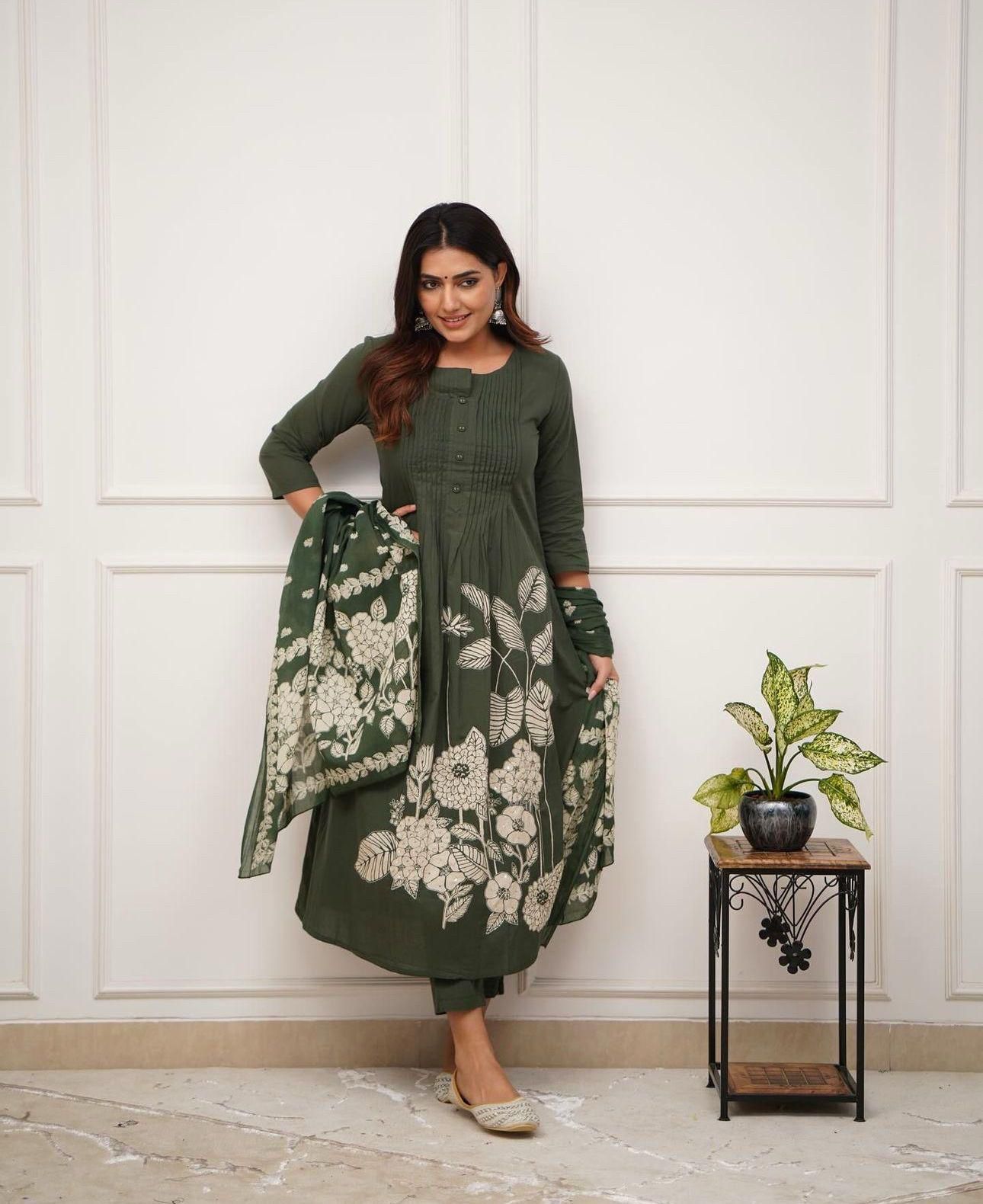 Step into timeless elegance with our Cotton Embroidered Printed Anarkali Kurti Pant Dupatta Set. Crafted from breathable cotton, this set features a pintex work that radiates charm. The ensemble includes a gracefully flowing Anarkali kurti, complementing pants, and a matching dupatta adorned with delicate tassels, perfect for both casual outings and festive occasions. Embrace tradition with a modern twist, designed for comfort and style.