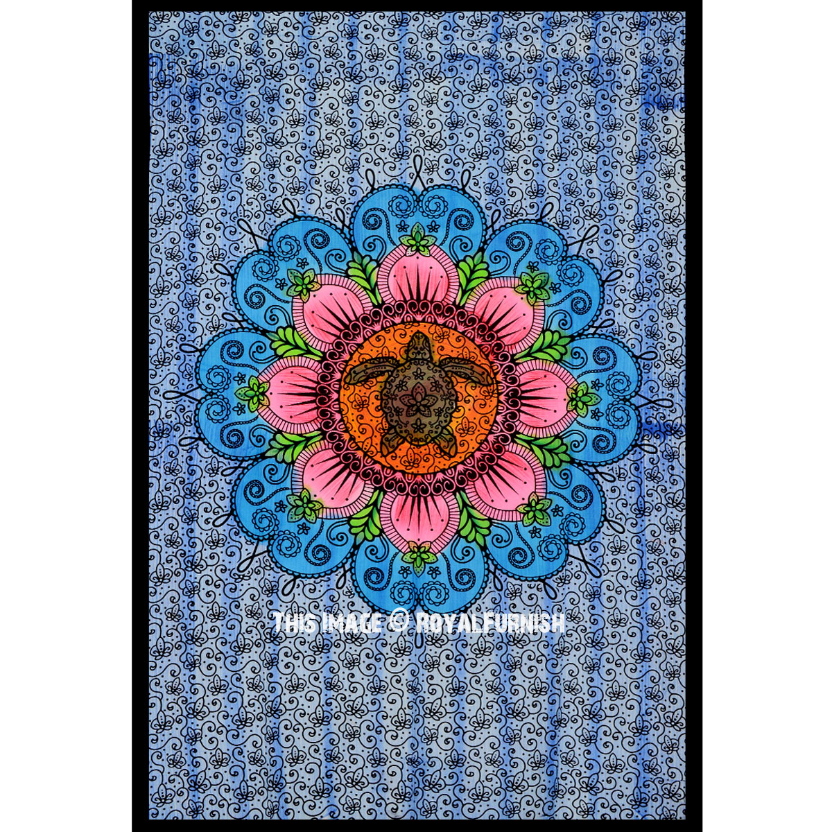 Blue Colorful Hand Brushed Sea Turtle Flower Mandala Tapestry Cotton Fabric Wall Hanging Hippie Decor