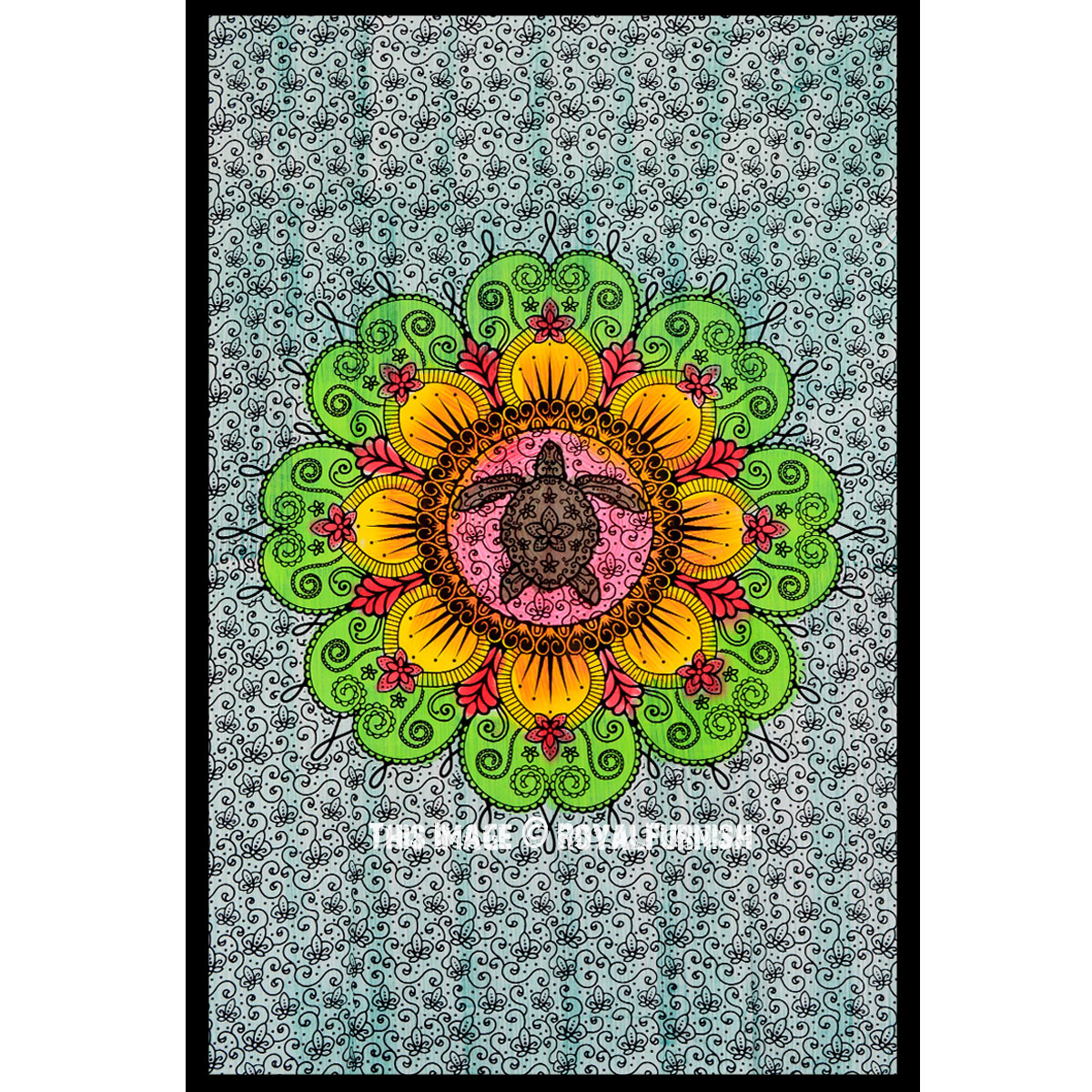 Green Colorful Hand Brushed Sea Turtle Flower Mandala Tapestry Cotton Fabric Wall Hanging Hippie Decor