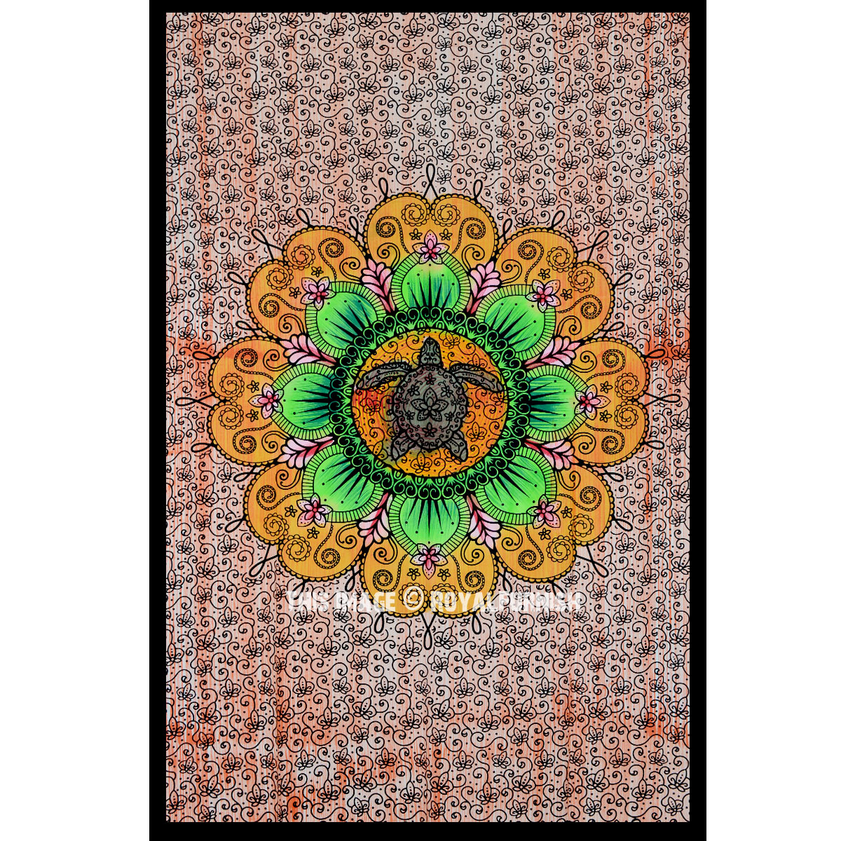 Orange Colorful Hand Brushed Sea Turtle Flower Mandala Tapestry Cotton Fabric Wall Hanging Hippie Decor