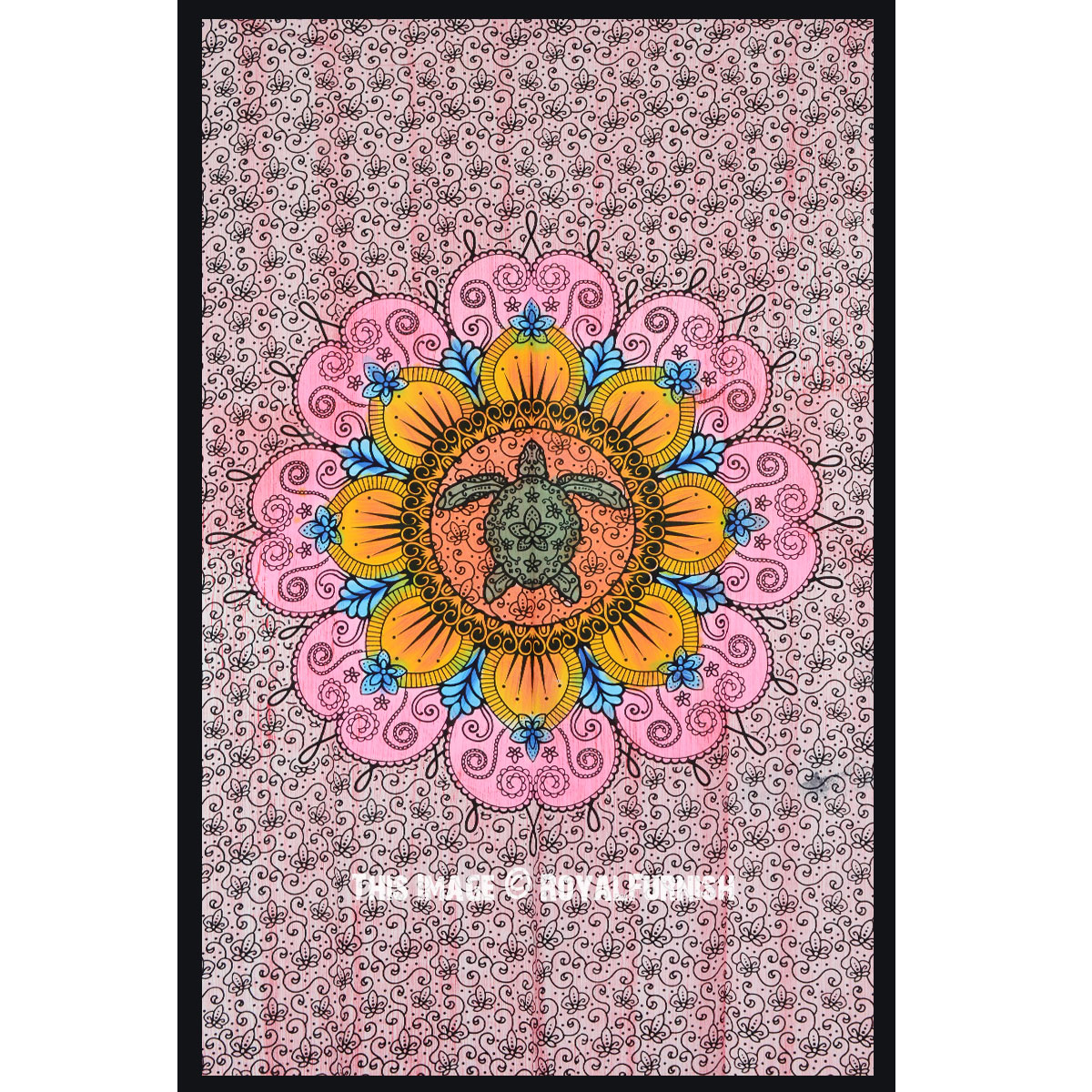 Pink Colorful Hand Brushed Sea Turtle Flower Mandala Tapestry Cotton Fabric Wall Hanging Hippie Decor