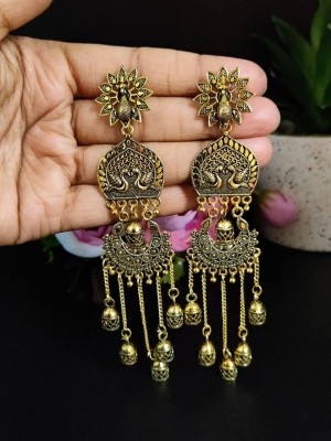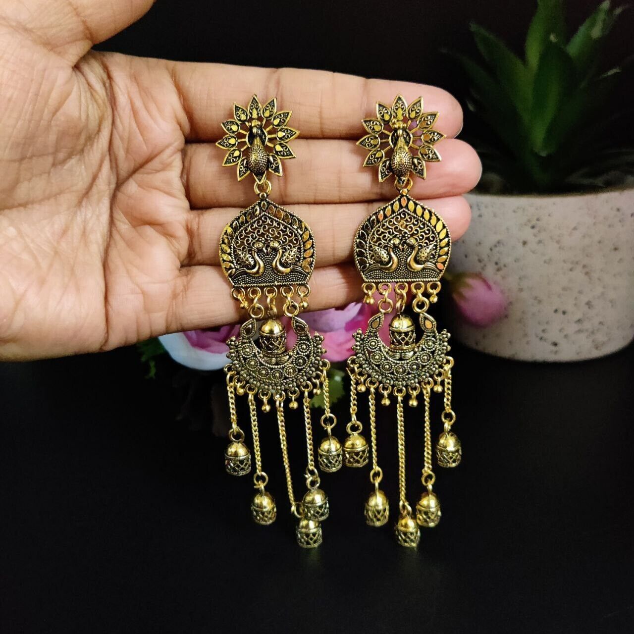 Beautiful Peacock Design Gold Plated Oxidized Long Earring Traditional Ethnic Earring Gift For Girls