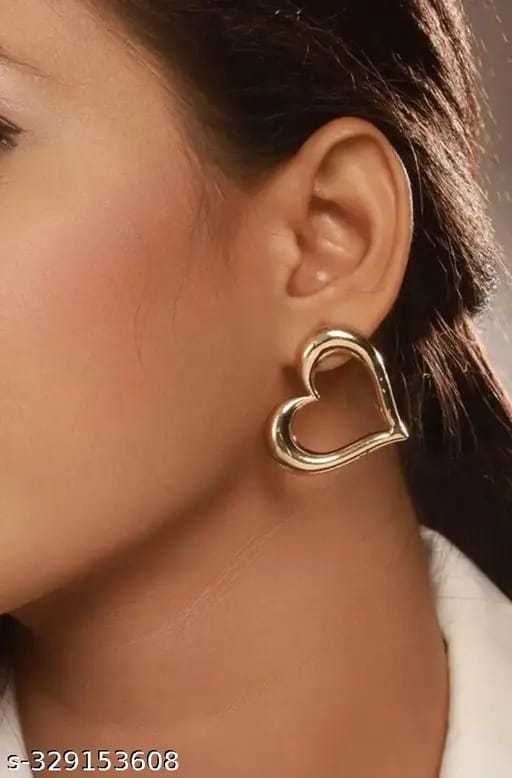 Heart Shape Golden Earrings Designer Stud Silver Oxidised Earring Pair for Women