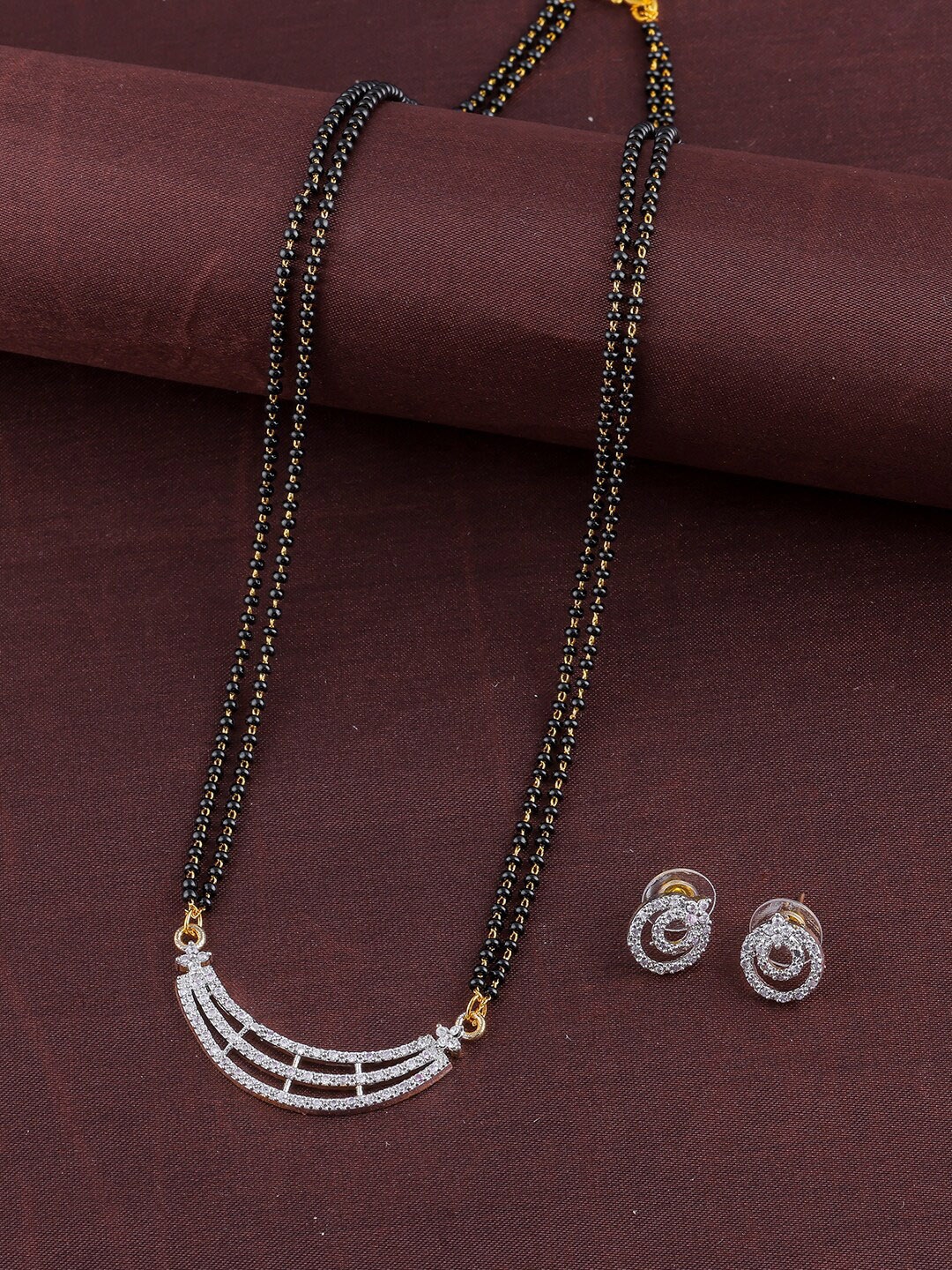 Classic look AD Mangal Sutra Necklace set with Stud AD Earrings for women to wear.