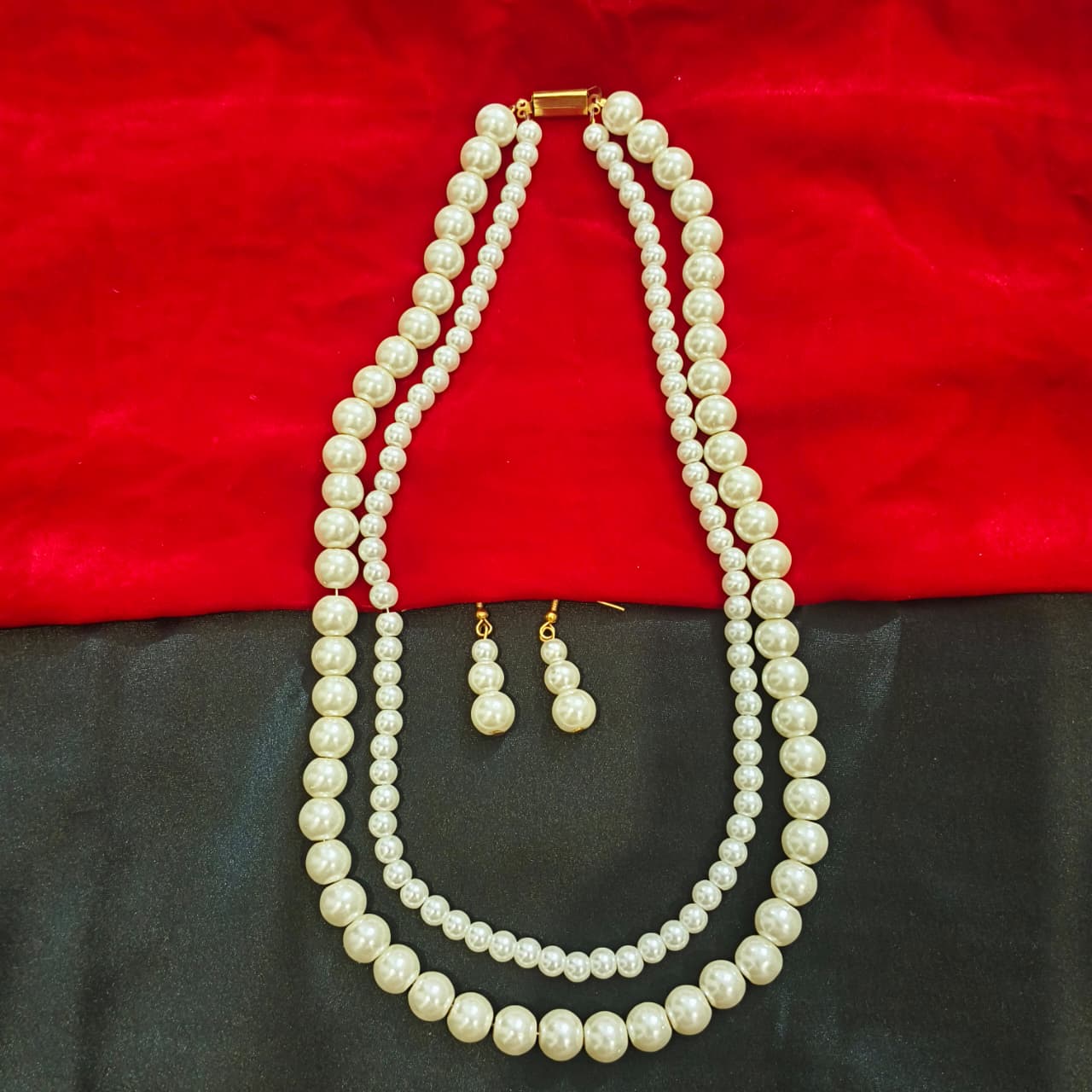 White Two Layer Necklace Set Pearl Necklace Earrings Jewellery Set