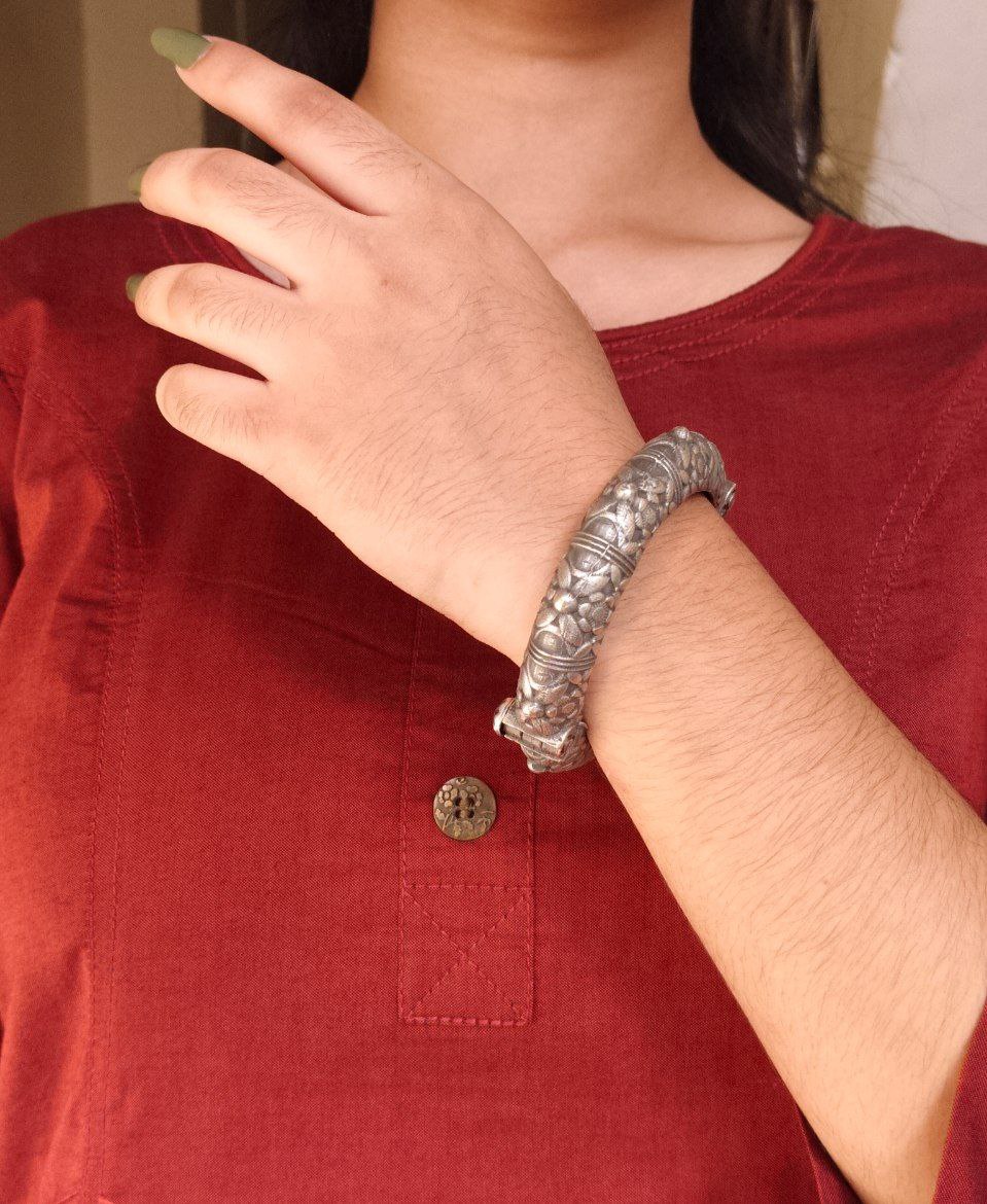 Ethnic Indian Flower Designer Silver Oxidised Bracelet Kada Free Size Openable Kangan Bangle for Girls
