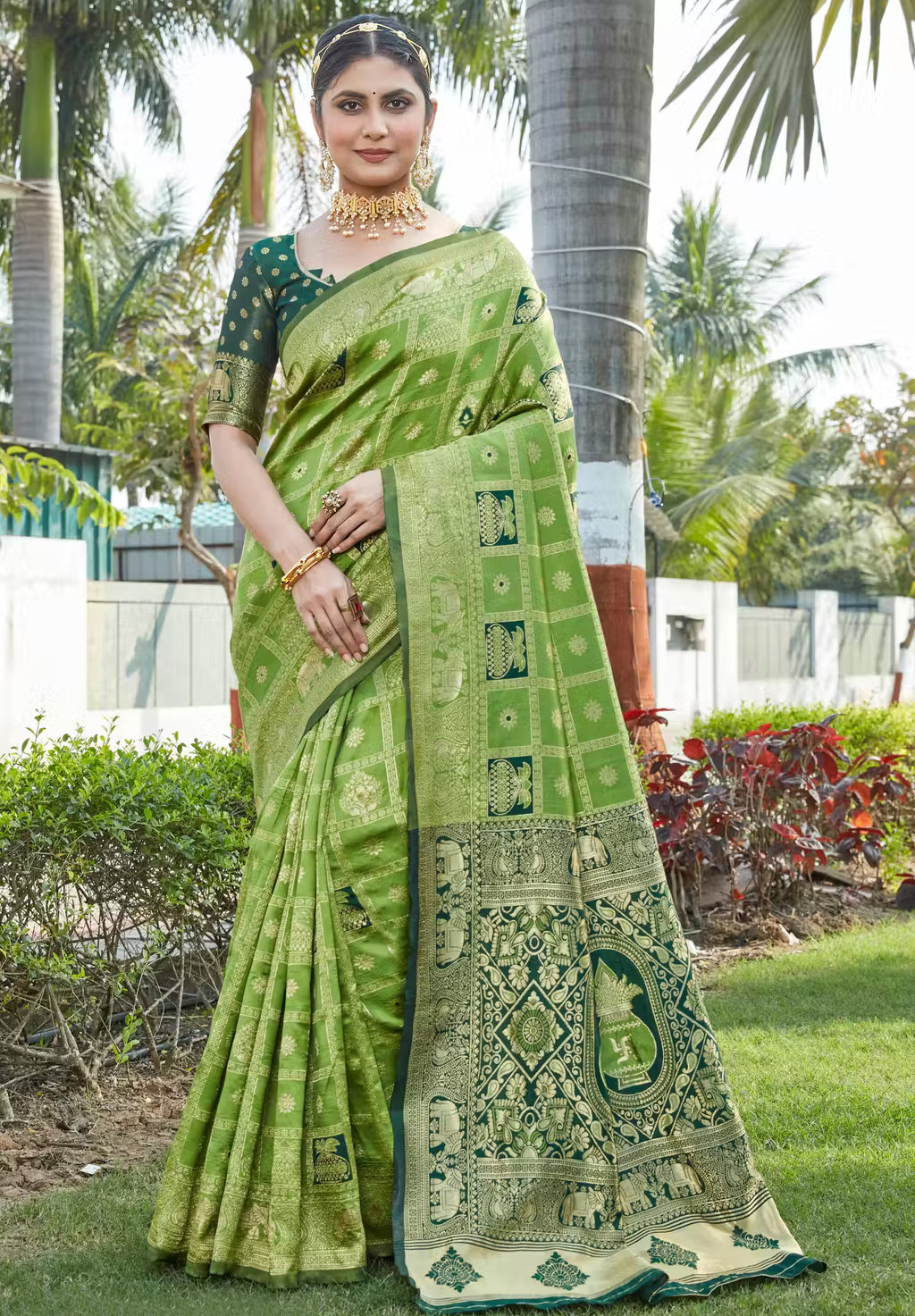 Green Designer Woven Zari Banarasi Silk Saree Jacquard Ethnic Wear Kanjivaram Saree with Blouse Piece