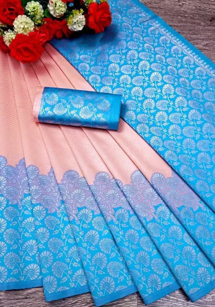 This saree is a perfect combination of tradition and elegance, designed to make you stand out on every special occasion. Lightweight and easy to drape, ensuring all-day comfort. A timeless design that blends cultural heritage with modern sophistication. Elegant cream body adorned with intricate woven patterns. Comes with a matching blouse piece to complete the ensemble.