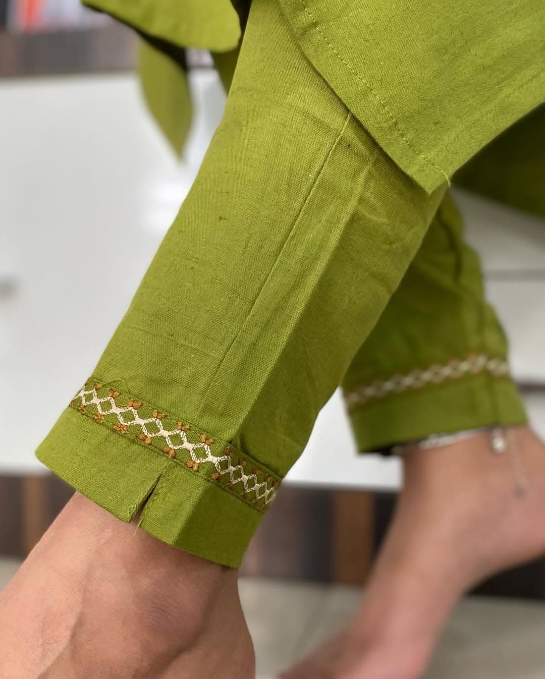 Green Pure Cotton Embroidered Straight Fit Cotton Kurti Pant Co Ord Set For Women - Set Of 2