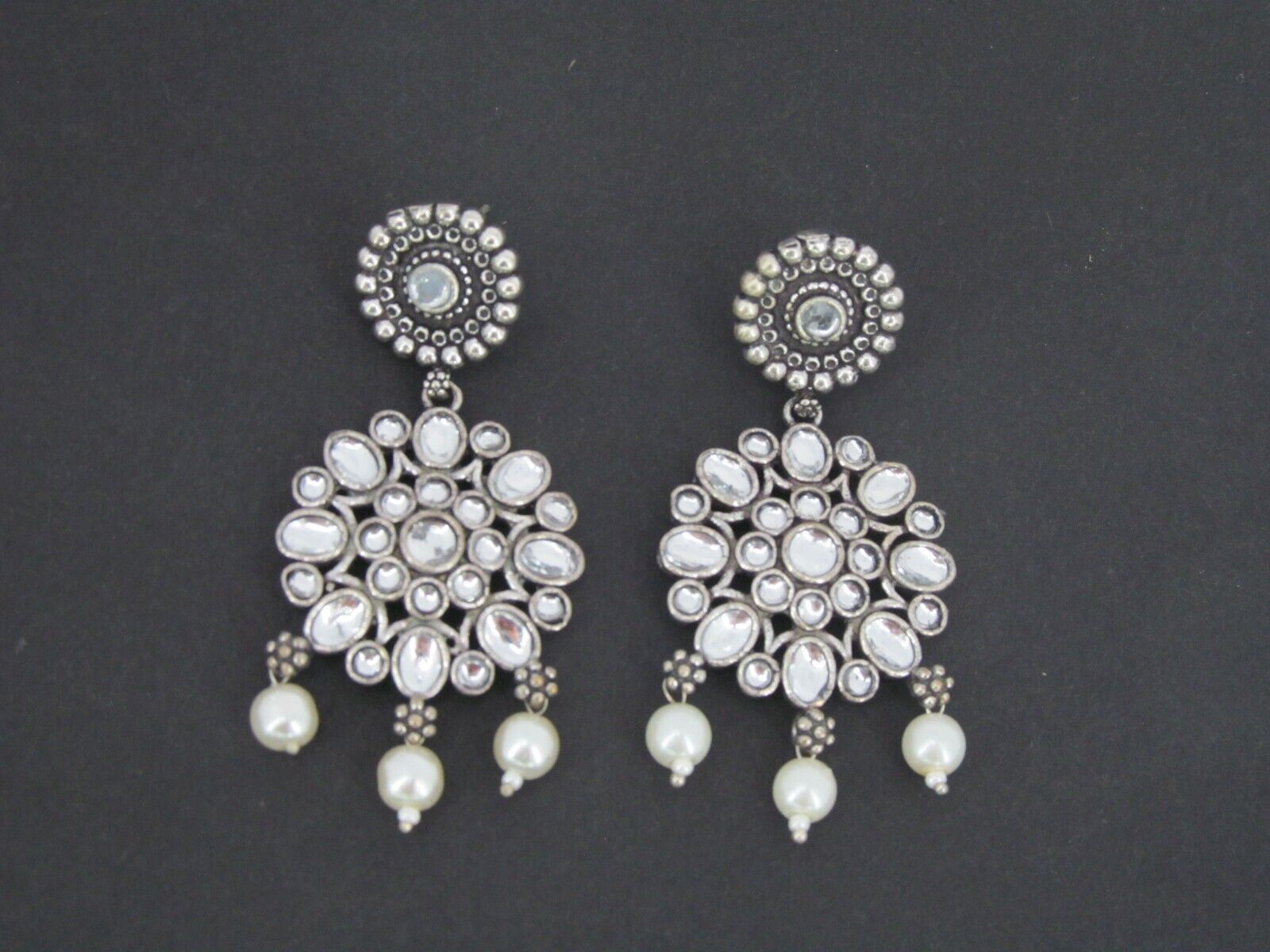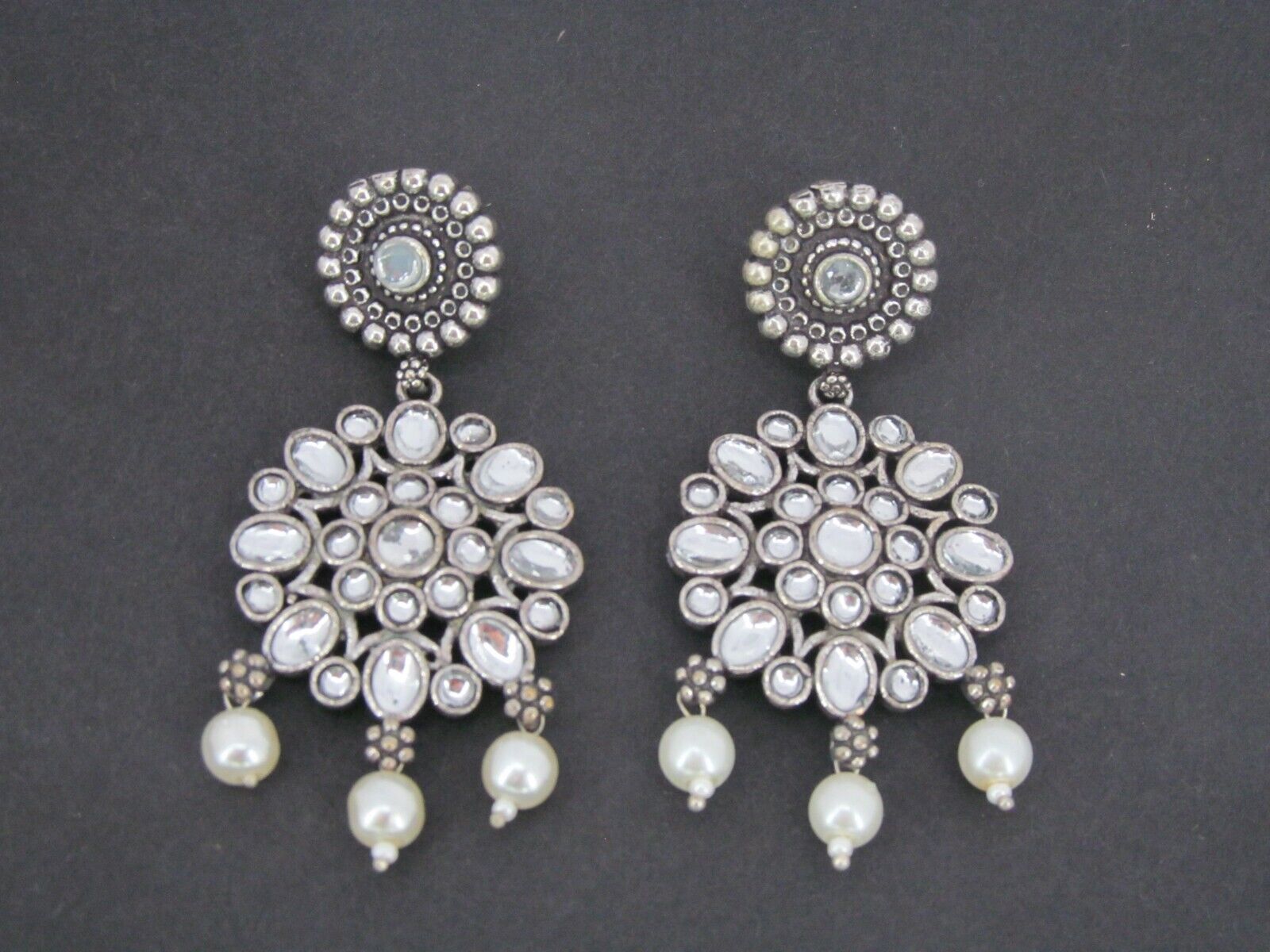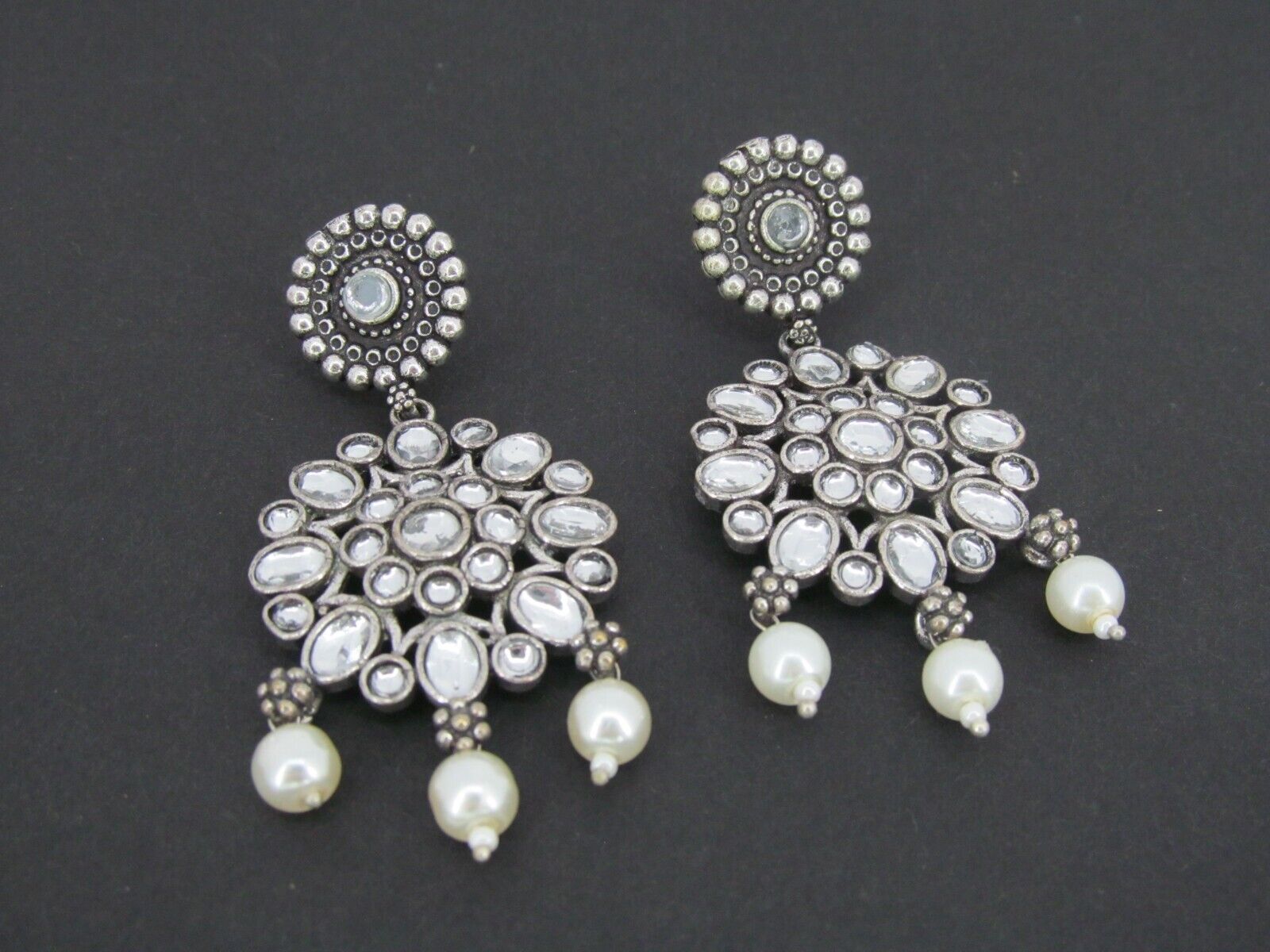 White Ethnic Indian Pakistani Women Earrings Oxidized Silver Fashion Jewelry Earring