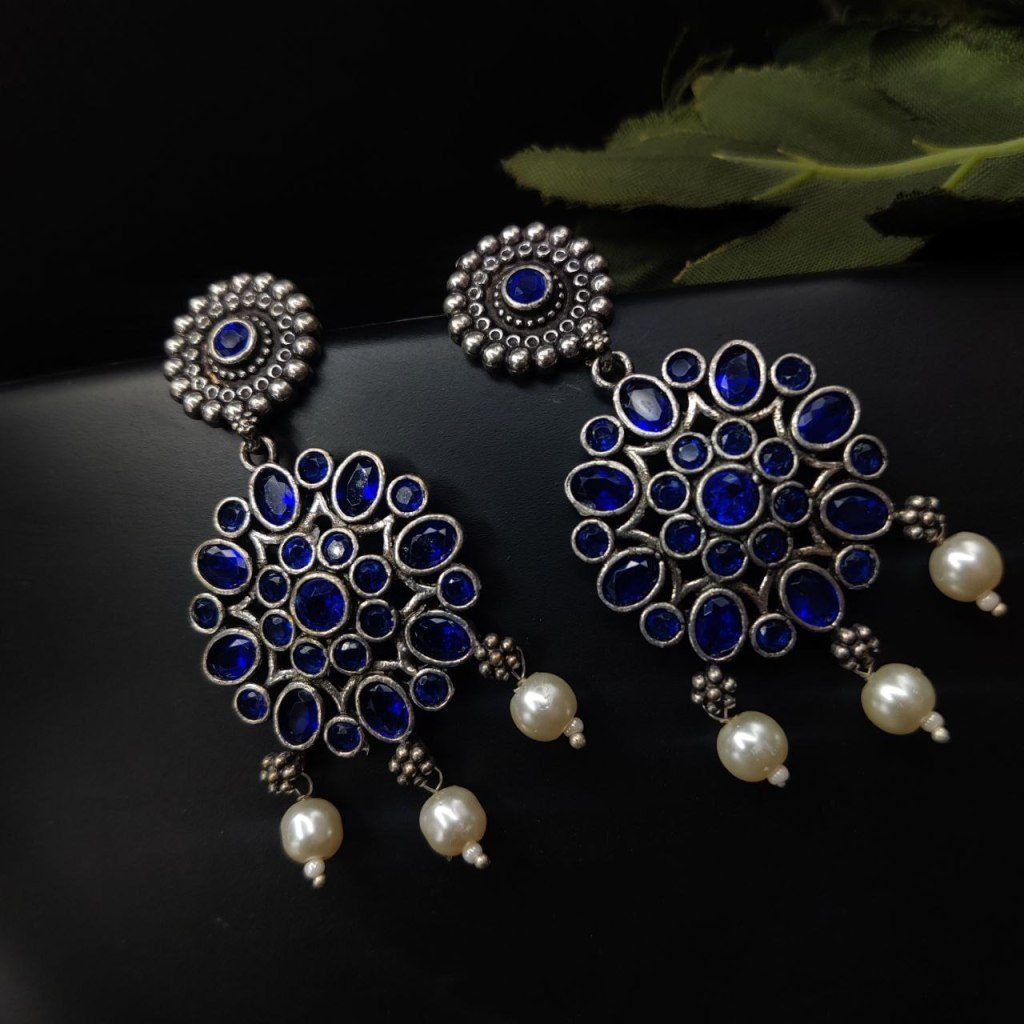 Blue Ethnic Indian Pakistani Women Earrings Oxidized Silver Fashion Jewelry Earring