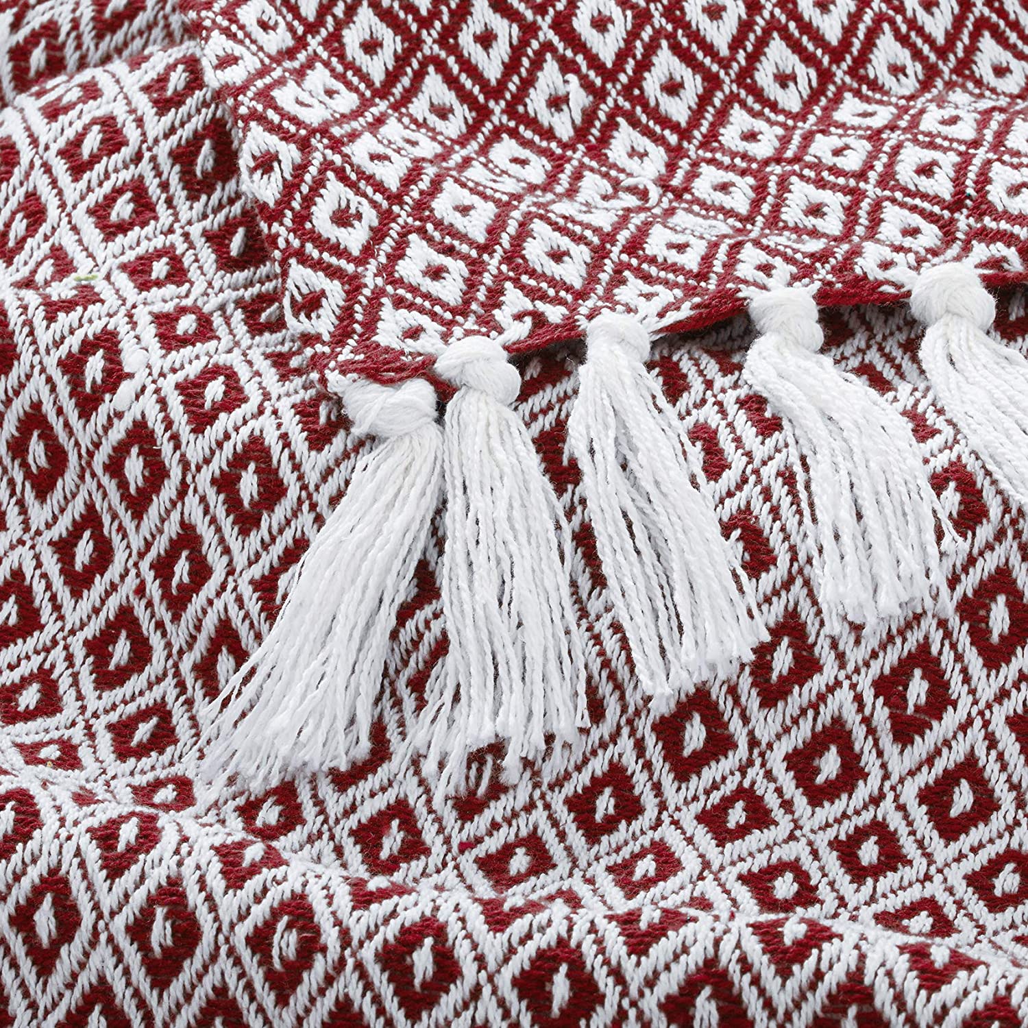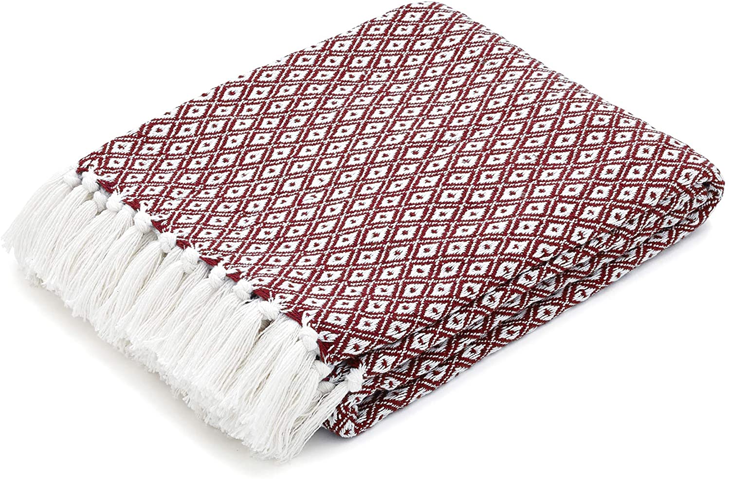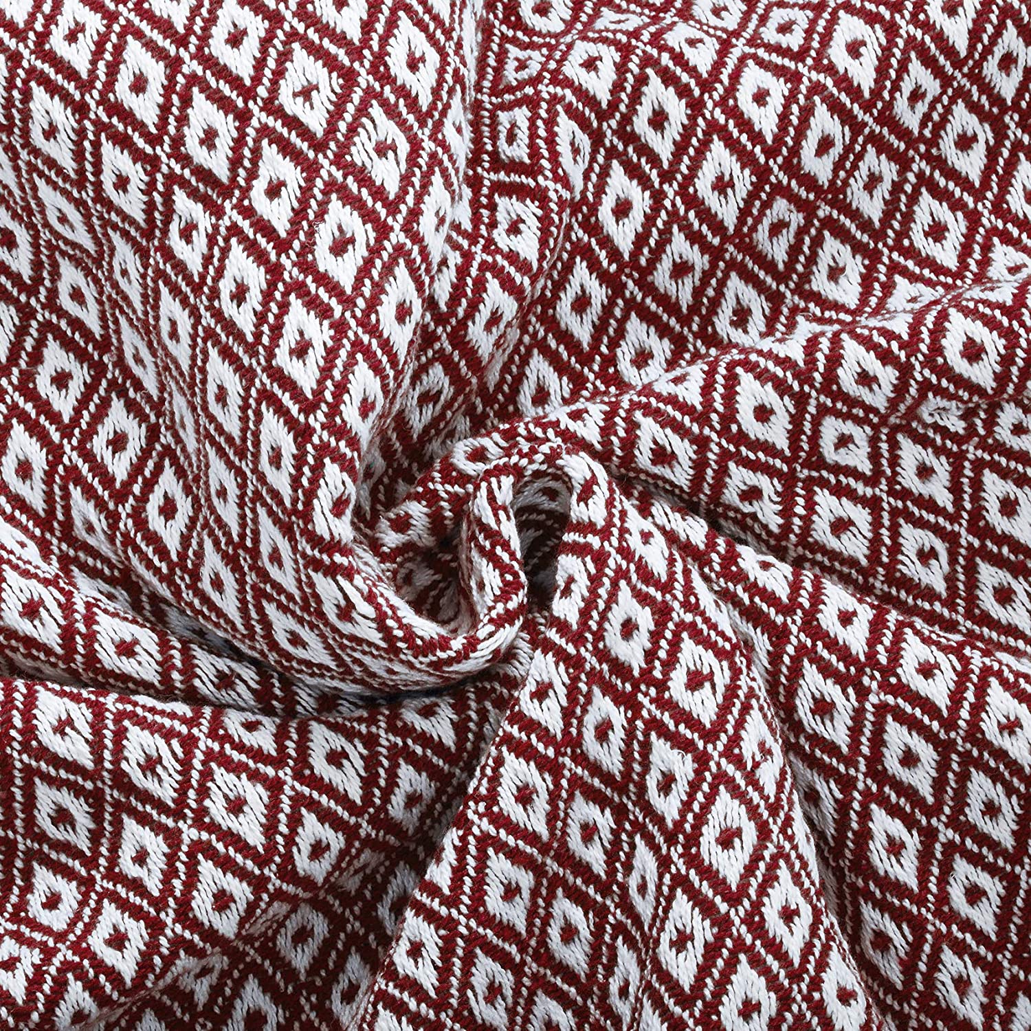 Maroon Diamond Pattern 100% Pure Cotton Lightweight and Breathable Knitted Throw Blanket for Sofa