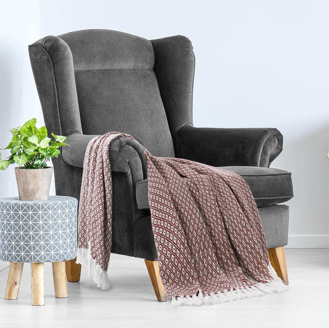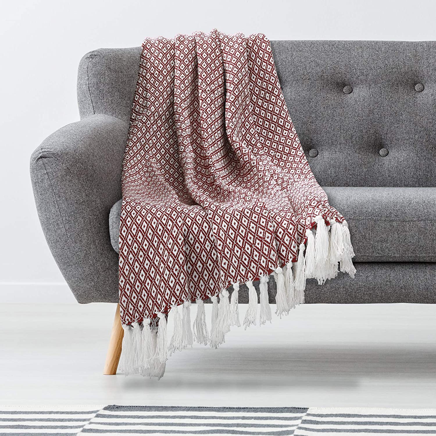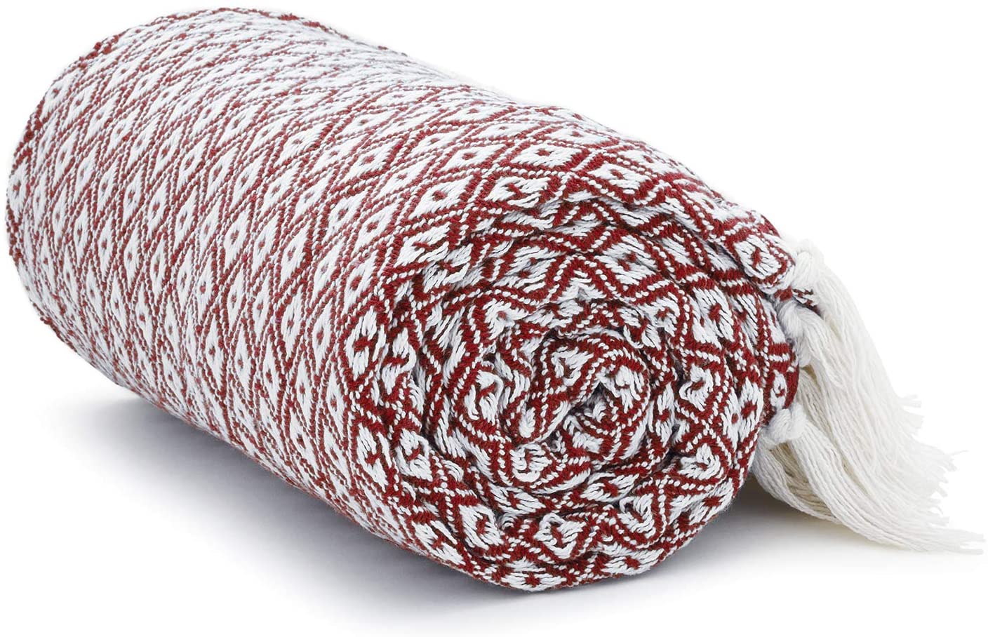 Maroon Diamond Pattern 100% Pure Cotton Lightweight and Breathable Knitted Throw Blanket for Sofa