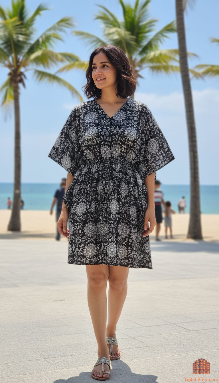 Stay stylish and comfortable with this Free Size Cotton Hand Block Floral Printed Short Kaftan. Perfect as a maxi summer dress, beach cover up, or boho hippy tunic, it offers a relaxed fit with breathable cotton fabric. The hand block floral design adds charm, making it an ideal choice for casual outings, vacations, or lounging in effortless elegance.