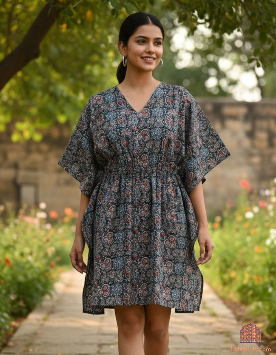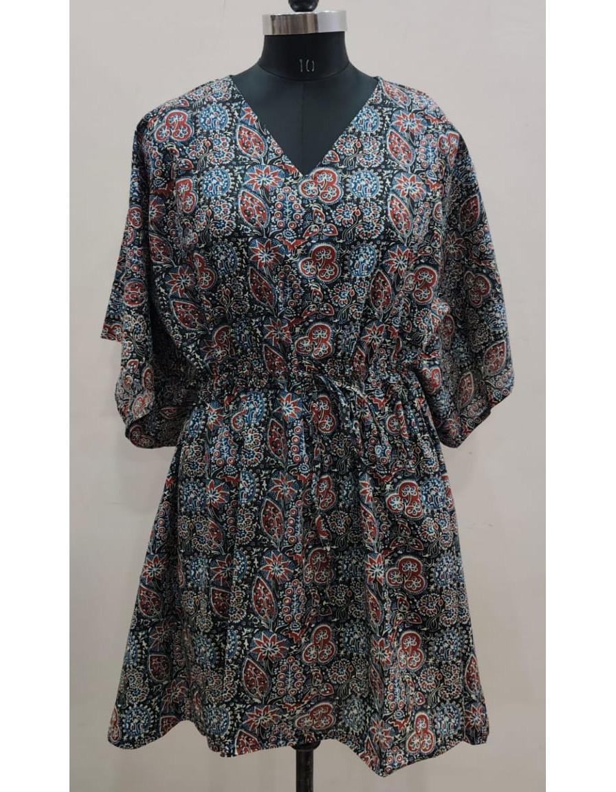 Stay stylish and comfortable with this Free Size Cotton Hand Block Floral Printed Short Kaftan. Perfect as a maxi summer dress, beach cover up, or boho hippy tunic, it offers a relaxed fit with breathable cotton fabric. The hand block floral design adds charm, making it an ideal choice for casual outings, vacations, or lounging in effortless elegance.