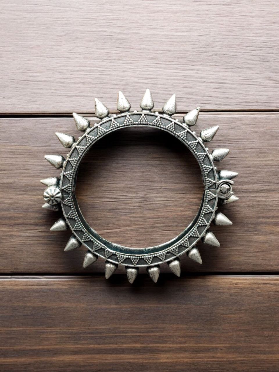 Unique Spikes Designer Traditional Rajasthani Bangdi Bangle Kada Silver Oxidised Adjustable Cuff Bracelet
