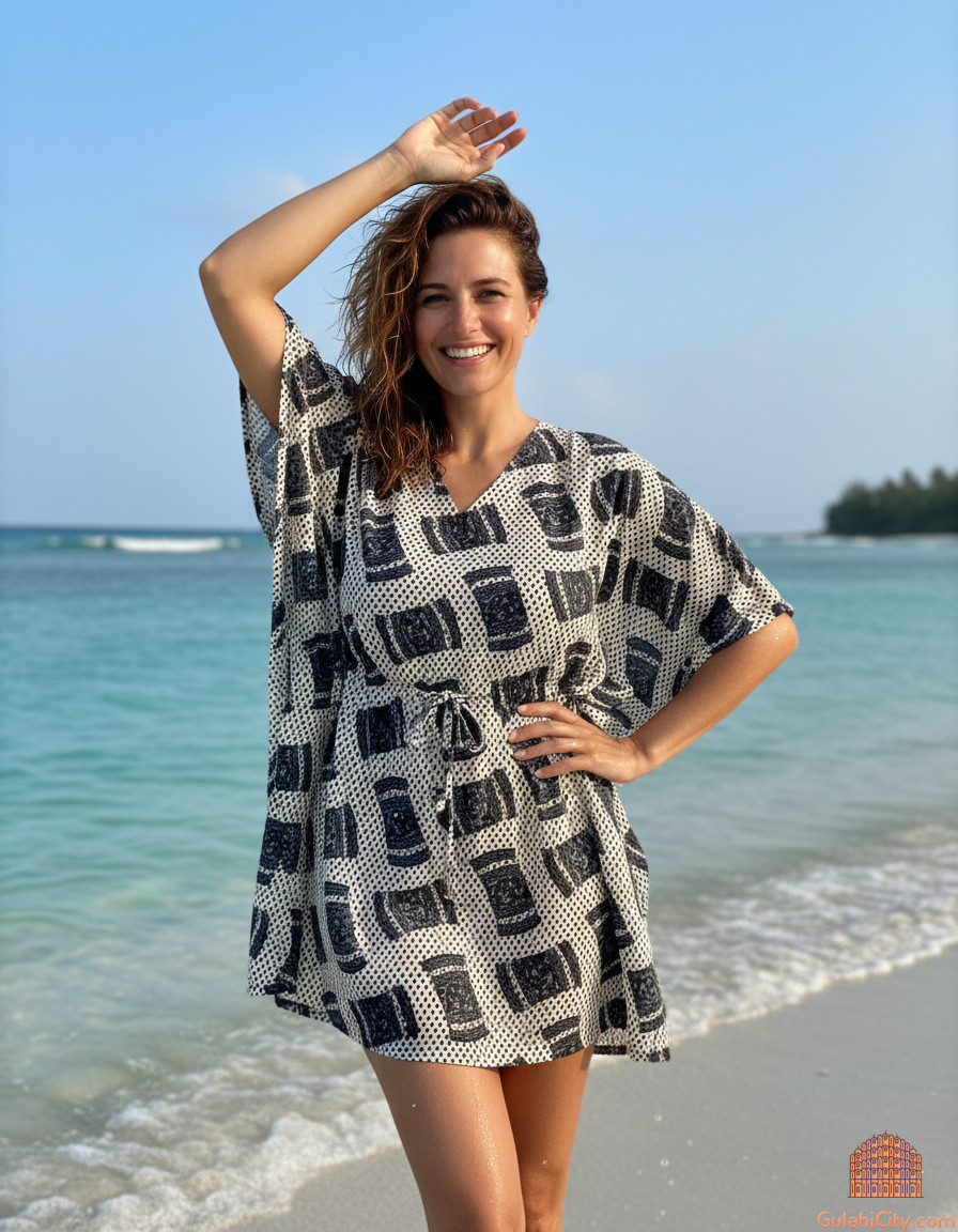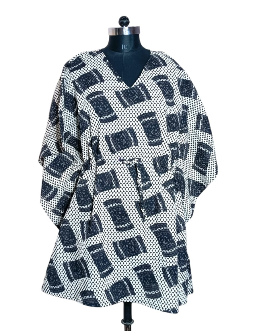 Stay stylish and comfortable with this Free Size Cotton Printed Short Kaftan. Perfect as a maxi summer dress, beach cover up, or boho hippy tunic, it offers a relaxed fit with breathable cotton fabric. The design adds charm, making it an ideal choice for casual outings, vacations, or lounging in effortless elegance.