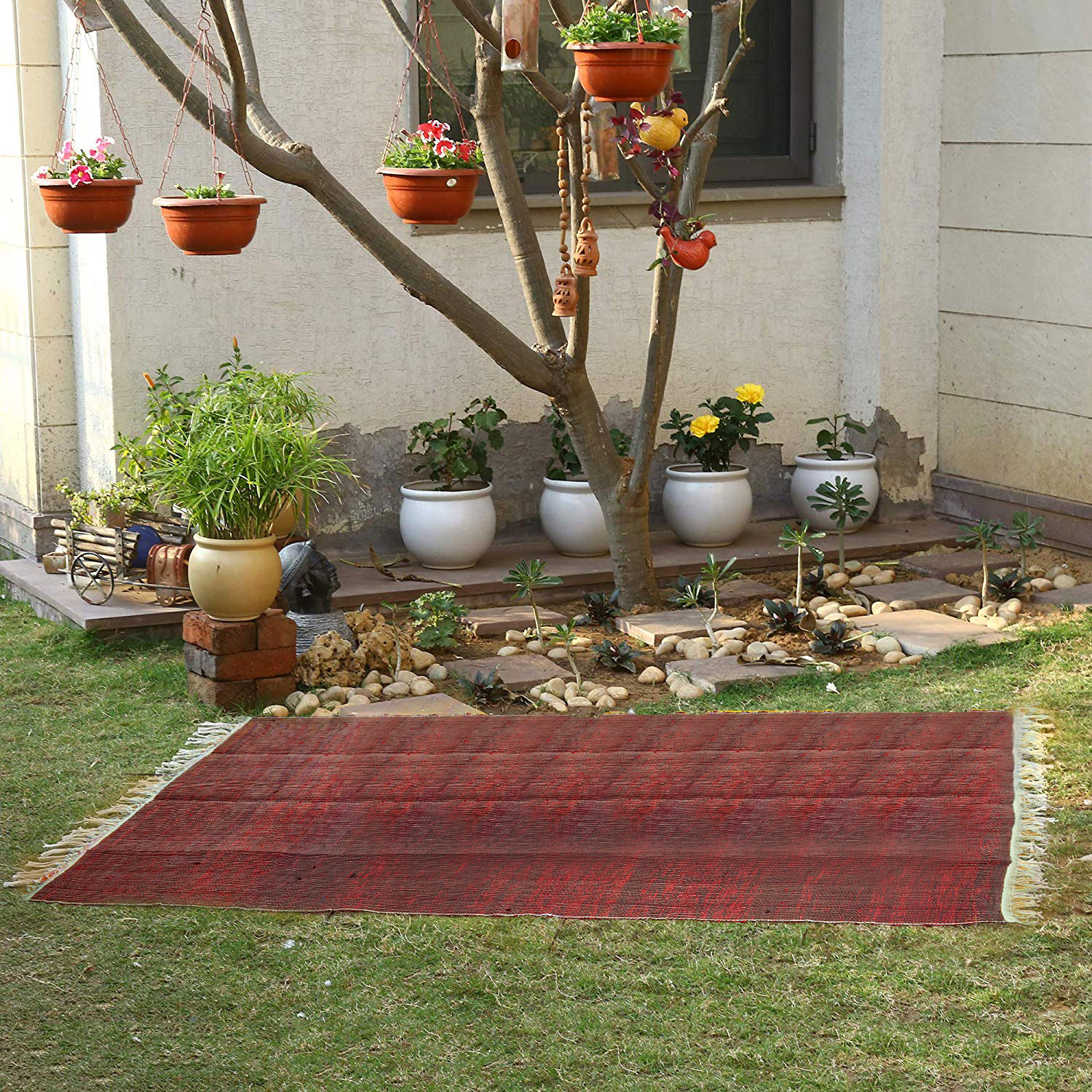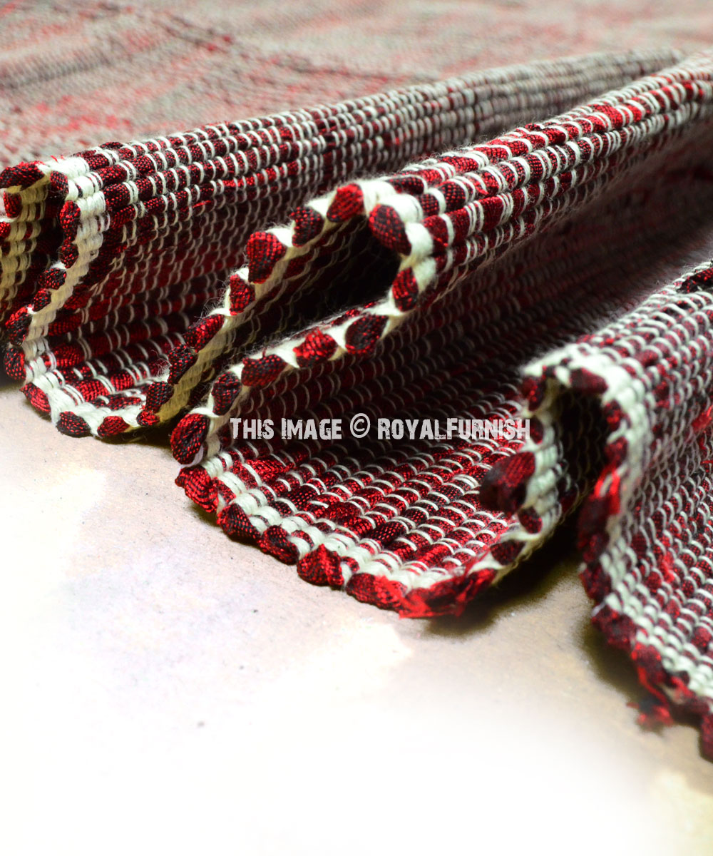 Maroon Bohemian Cotton Hand-Loomed Chindi Rag Rug (3x6 ft) - Handmade Reversible Decorative Yoga Floor Mat