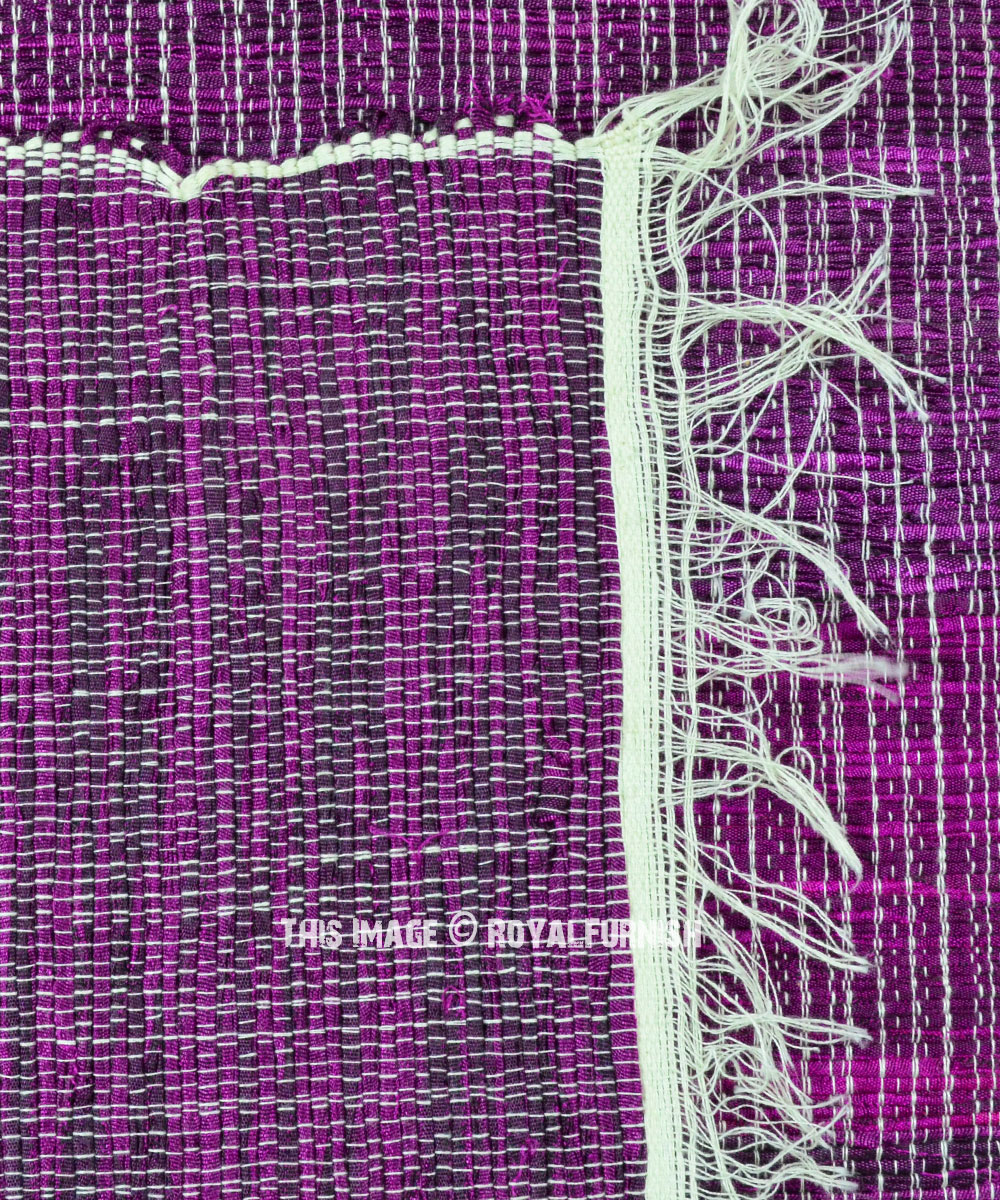 Purple Bohemian Cotton Hand-Loomed Chindi Rag Rug (3x6 ft) - Handmade Reversible Decorative Yoga Floor Mat
