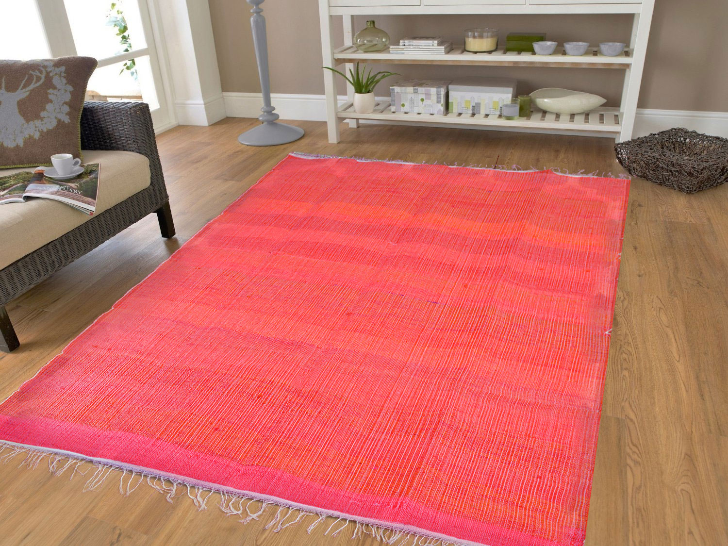 • 100% cotton recycled fabric cuttings are used to weave this rug with fringes at both ends