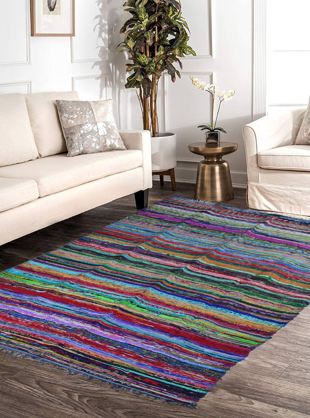 Handwoven Multicolored Chindi Rag Area Rug for Bohemian Living Room Decor & Sustainable Home Accents
