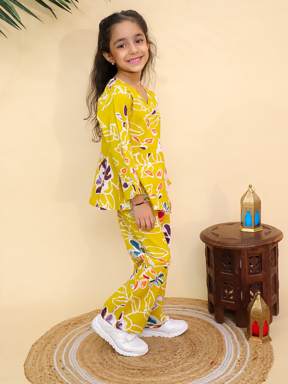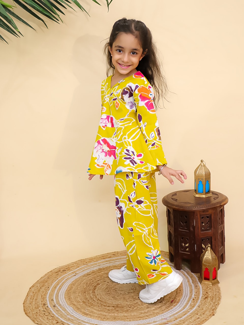 Brighten up your little one's wardrobe with this charming Yellow Floral Printed Co-Ord Set. Made from soft and breathable cotton, it ensures comfort all day long. The vibrant floral prints add a playful touch, while the stylish kurti and matching pants give a trendy look. Perfect for casual outings, festive occasions, or daily wear, this kids wear set combines fashion with comfort, keeping your child stylish and happy.