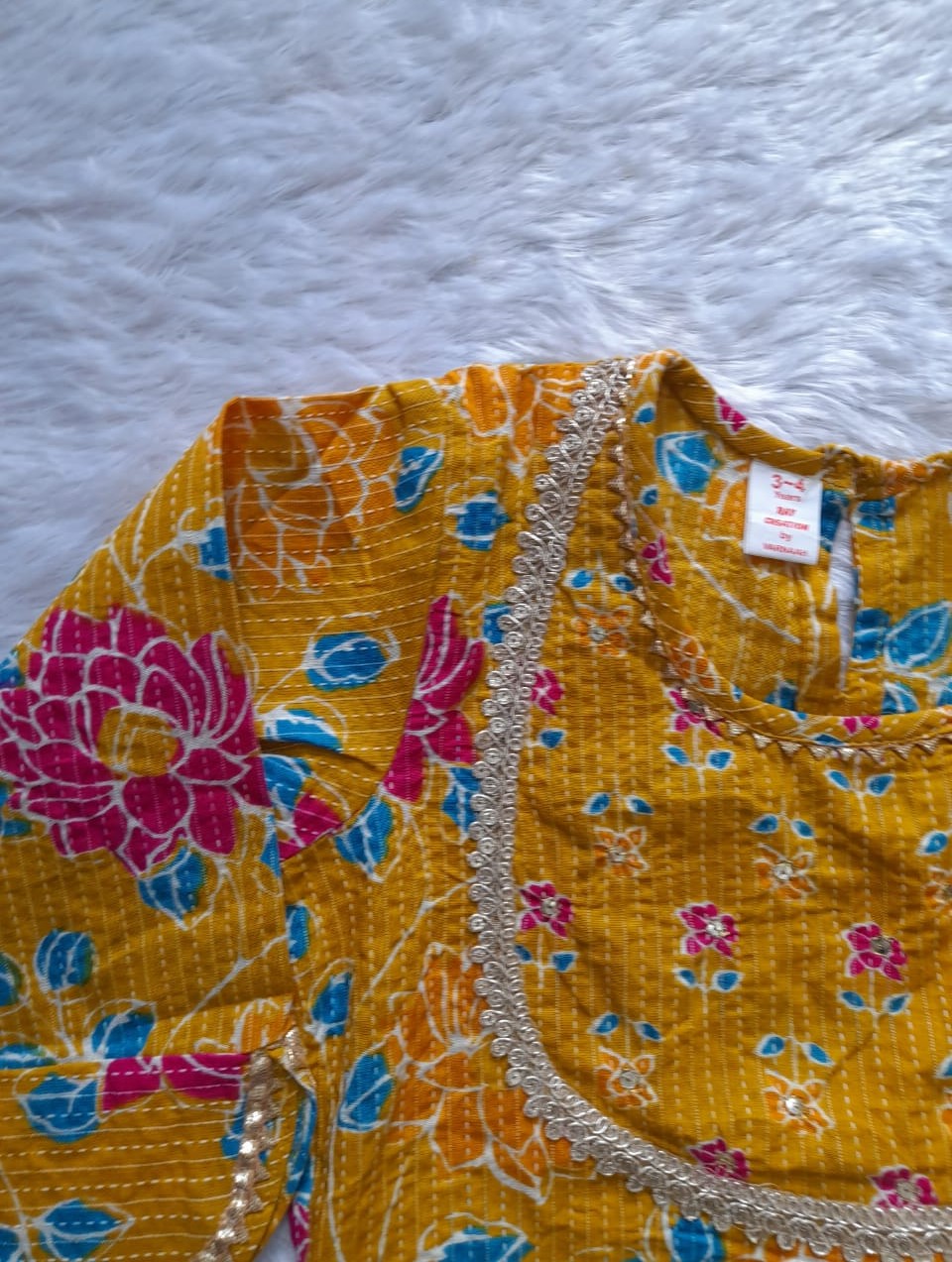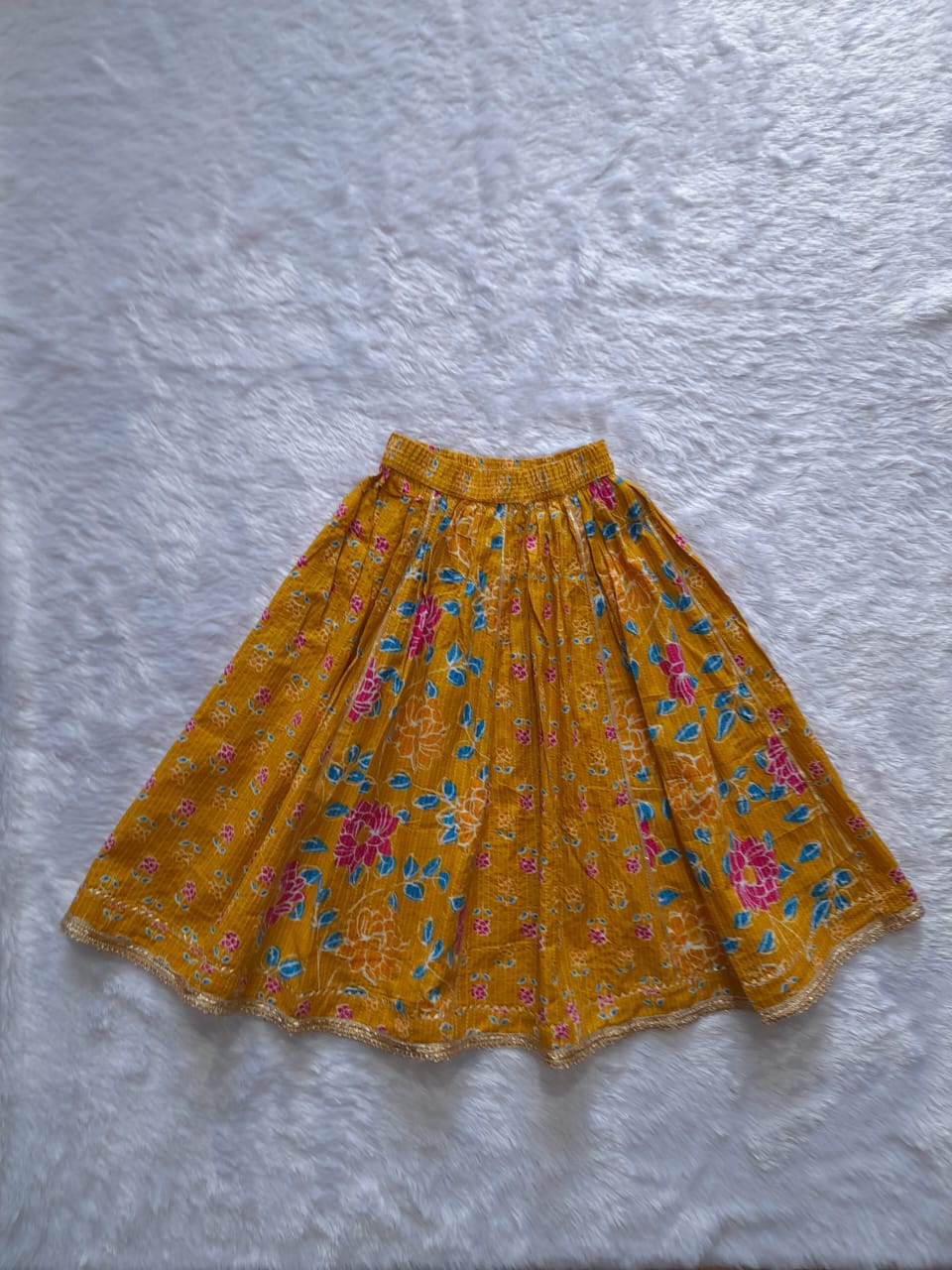 Dress your little princess in this stunning Green Floral Sanganeri Printed Lehenga Set, crafted from soft and breathable cotton for ultimate comfort. Featuring a beautifully printed lehenga, matching top, and dupatta, this set is perfect for festive celebrations, weddings, and traditional occasions. The vibrant floral patterns and golden detailing add a touch of elegance, while the lightweight fabric ensures ease of movement, keeping your girl stylish and comfortable all day long.