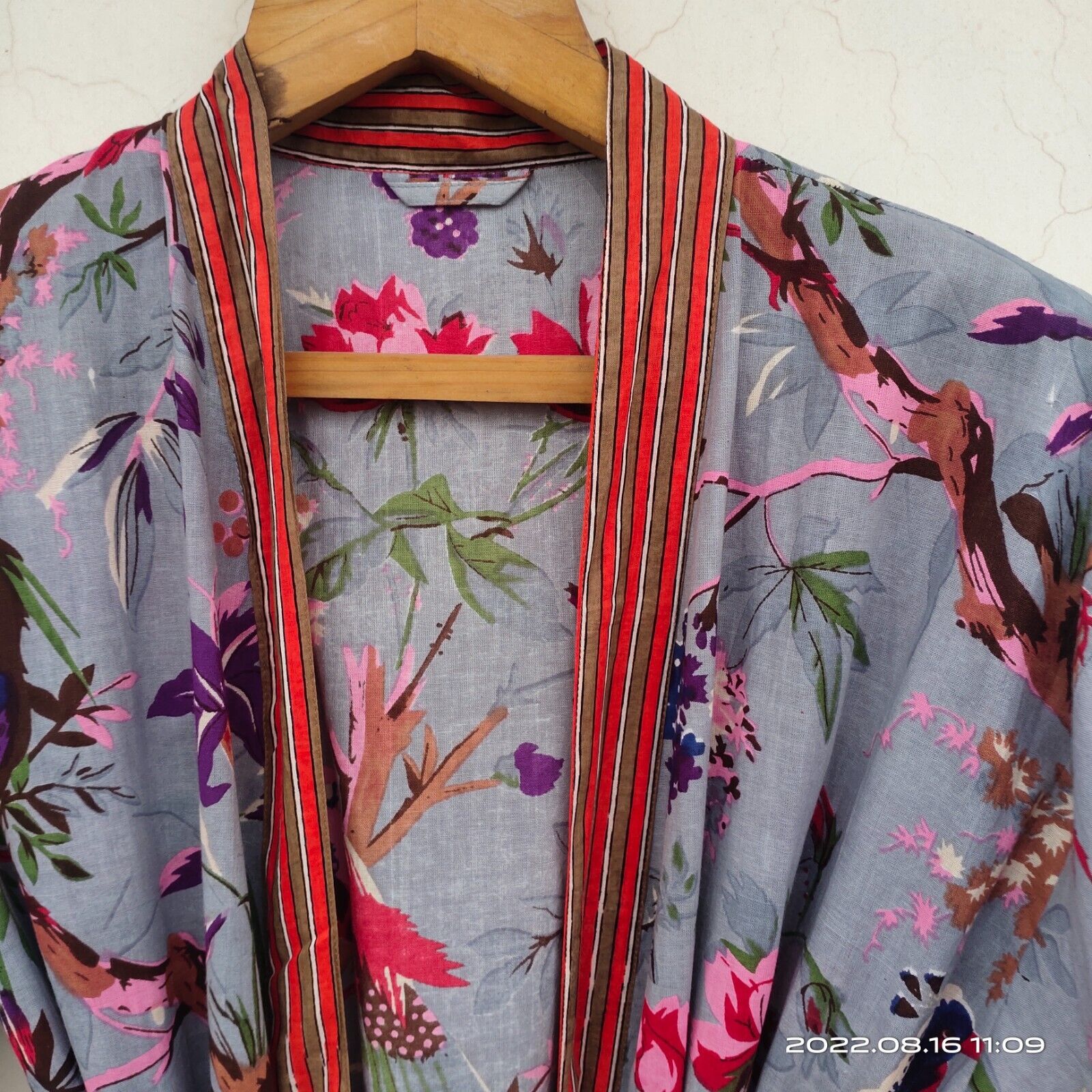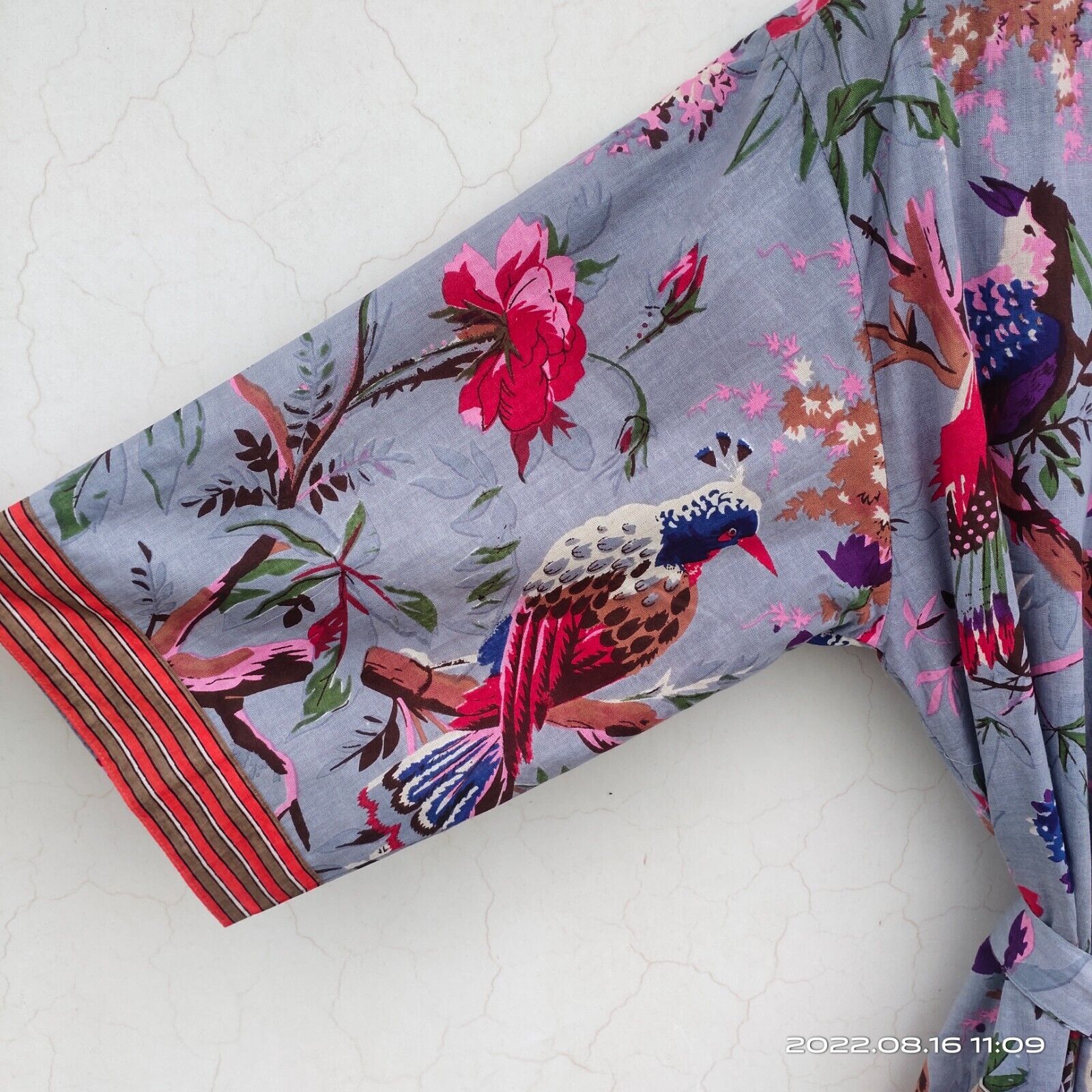 Cotton Gray Bird Paradise Japanese Kimono Bath Robe Dressing Gown Bridesmaid Robe Best Gifts for Her
