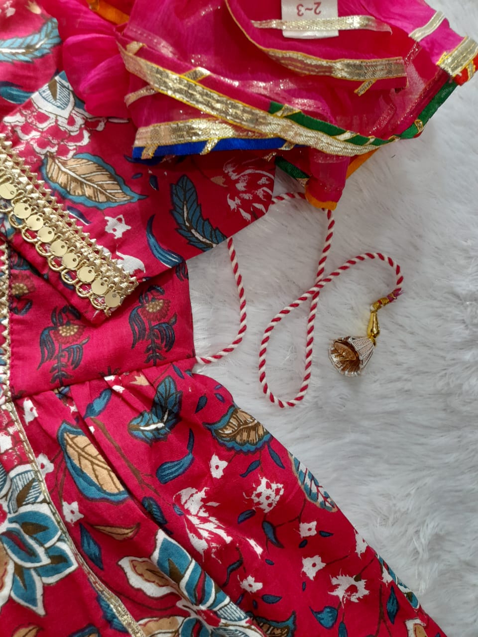 Give your little girl a stylish ethnic look with this Pink Floral Sanganeri Printed Kurti Pant Dupatta Set. Made from soft and breathable cotton, it ensures all-day comfort while keeping her festive-ready. The beautifully printed kurti is paired with a pant and a matching dupatta, enhanced with delicate golden detailing. Perfect for weddings, festivals, and traditional gatherings, this kids wear set combines elegance, comfort, and charm, making your princess stand out effortlessly.