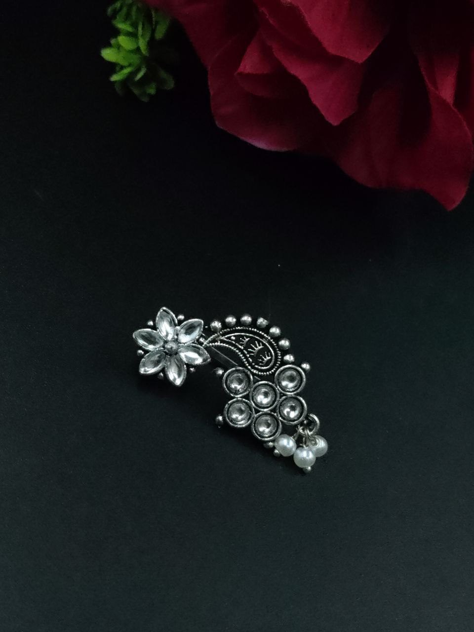 BabypinkMint Antique Paisley Designer Marathi Nath Silver Plated Maharashtrian Non-Piercing Adjustable Nose Pin