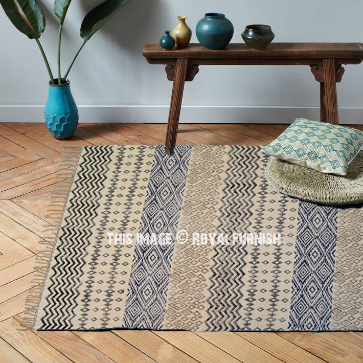 Give bare floors a quick & easy makeover with indigo blue dyed block printed cotton area rug. It will set the tone, color scheme and comfort to your living space or bedroom.