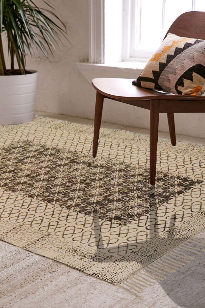 Design 1 Beige Multi Hand Block Printed Dhurrie Rug Indoor Outdoor Rag Rugs for Living Room