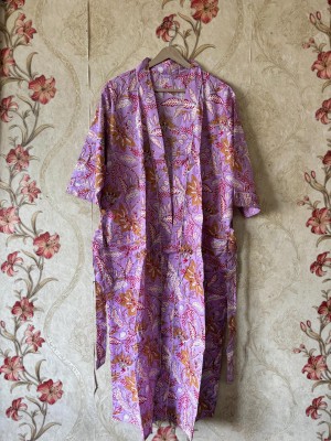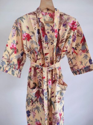 Cotton Kimono robes are perfect for lounging around the home or spa. Use our floral patchwork print robe as a cover up on the beach or after a dip in the pool. Add a luxury and boho feel to your bridal shower. Versatile, soft and luxurious, our 100% cotton kimono robes are printed with natural free dyes.