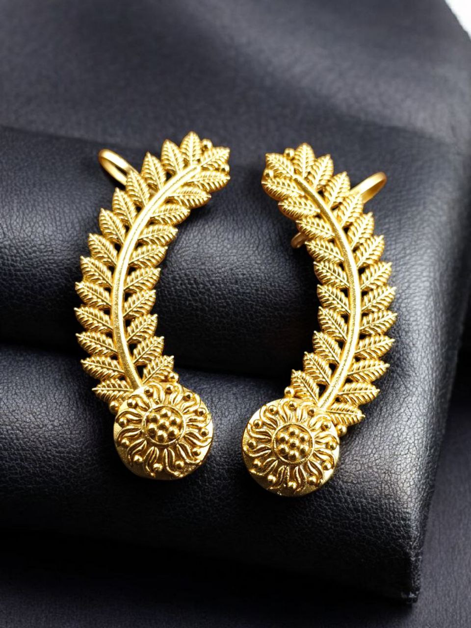 Gold Plated Leaf Designer Ear Wrap Earrings Unique Trending Earcuff Jewellery for Girls