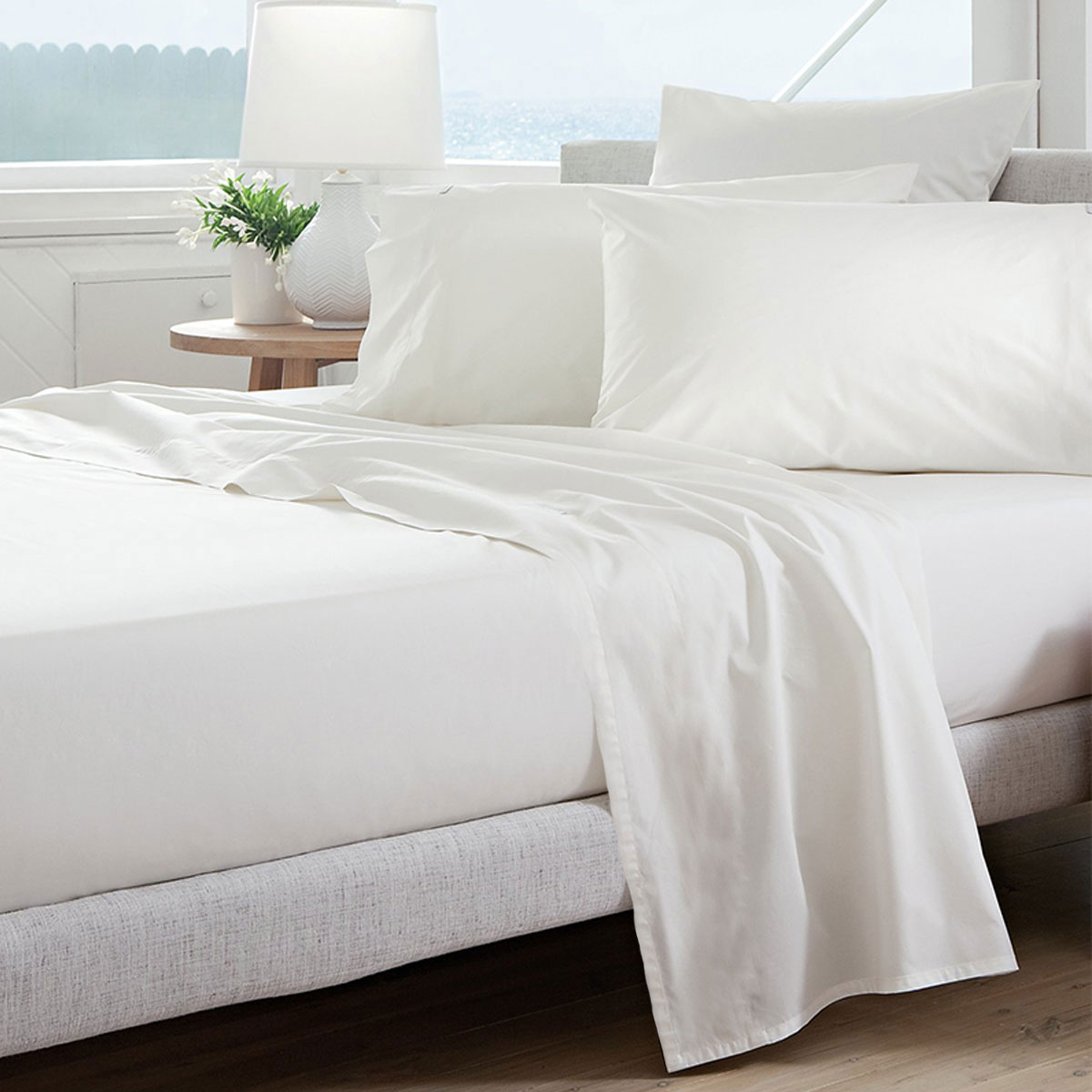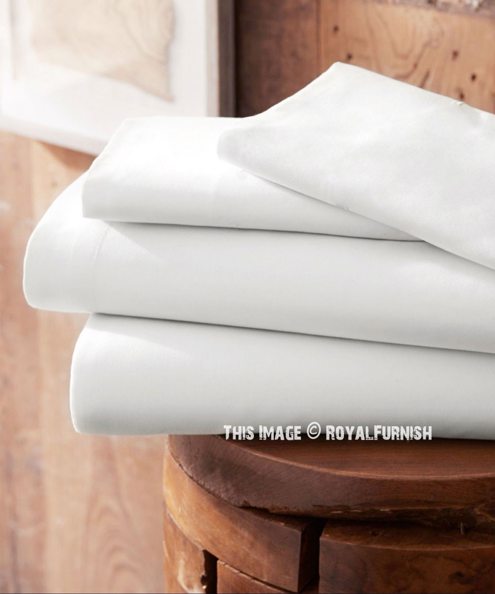 Solid White 300TC Cotton Queen Size Bed Sheet 4Pc Set 1 Flat Sheet, 1 Fitted Sheet and 2 Pillowcases