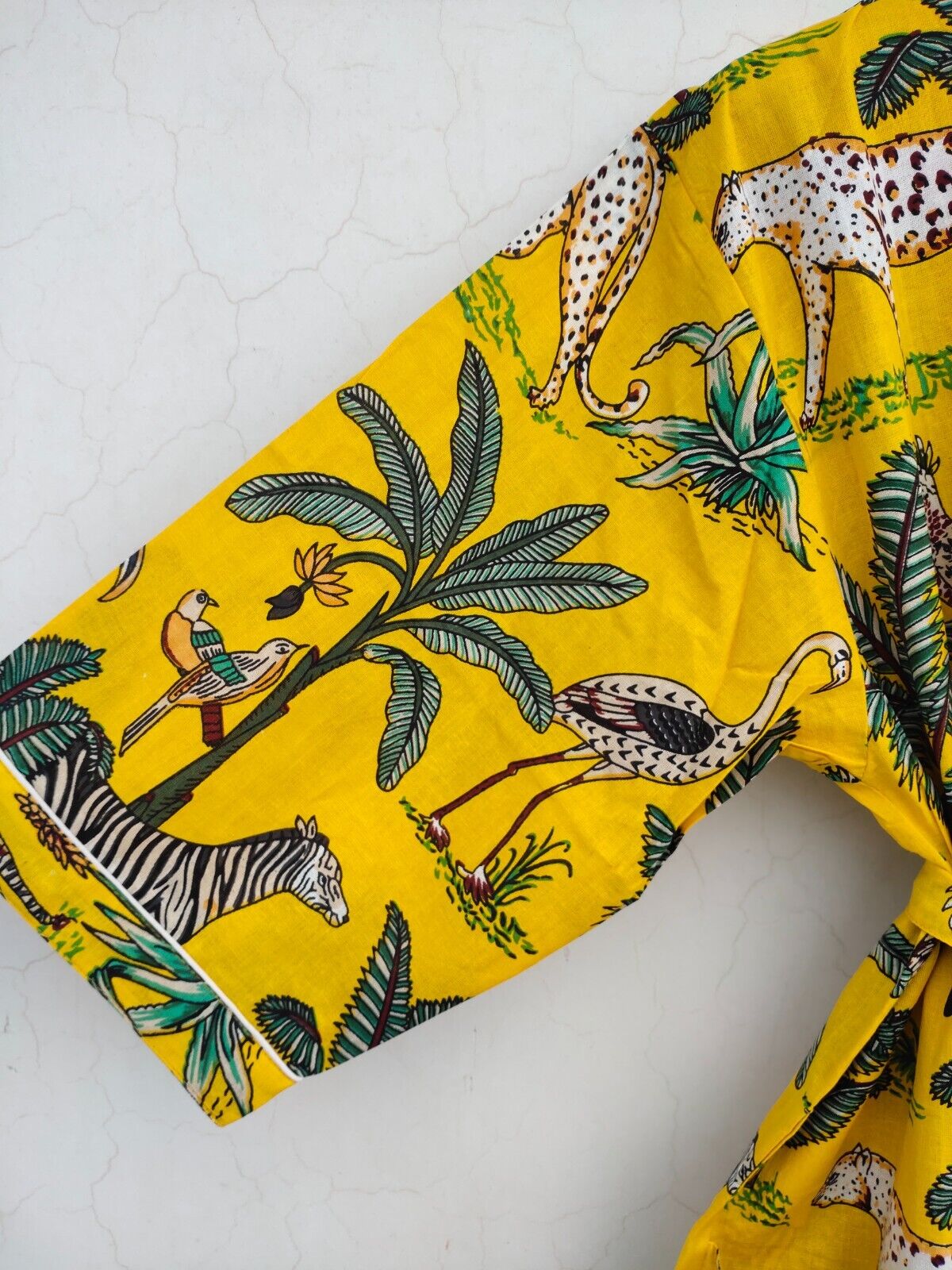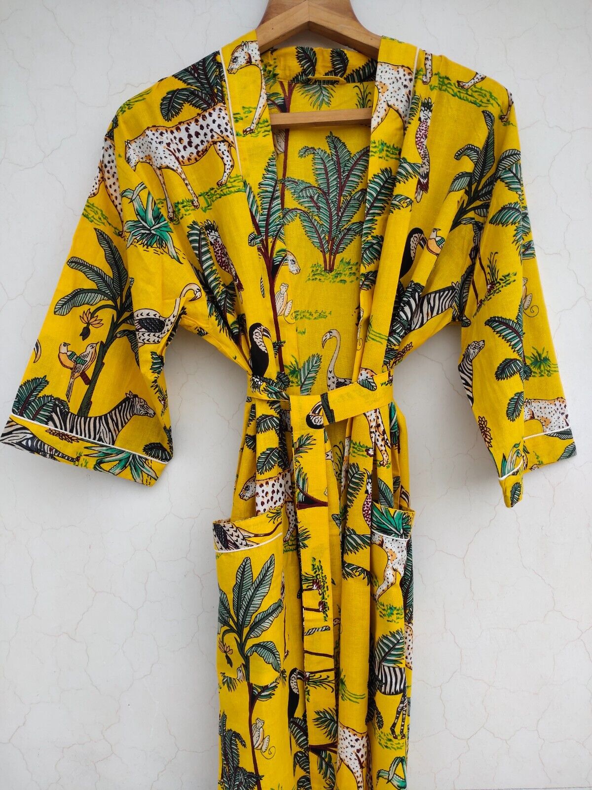 African Jungle Safari Cheetah Print Long Cotton Kimono Handmade Cover Up Bath Robes Night Dressing Gown
