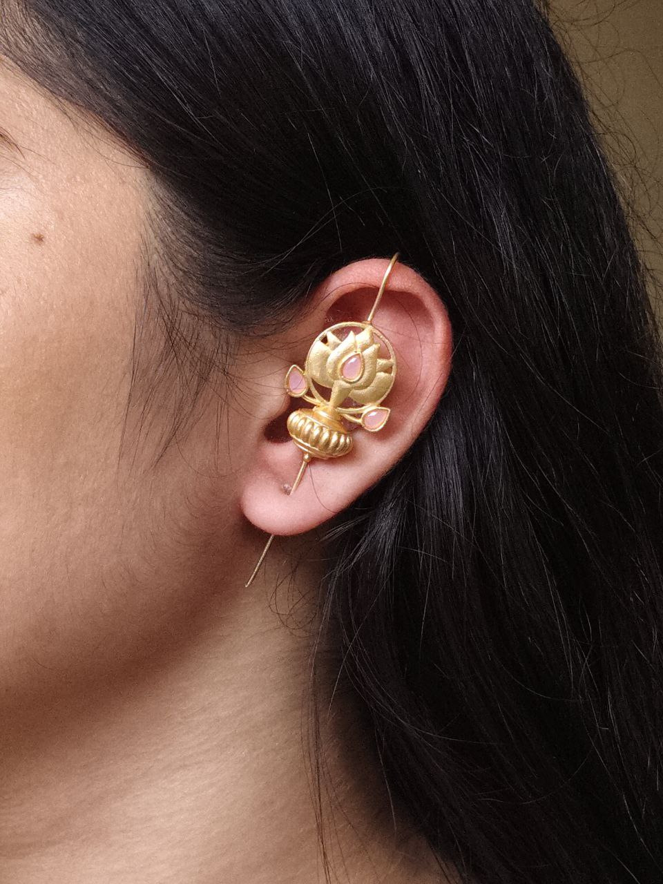 Baby Pink Elegant Gold Plated Lotus Flower Stonework Needle Earcuff Earrings Ear Wrap Jewellery